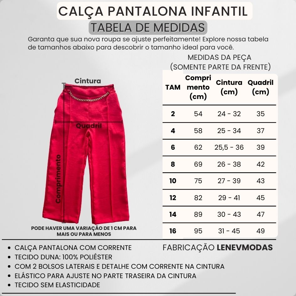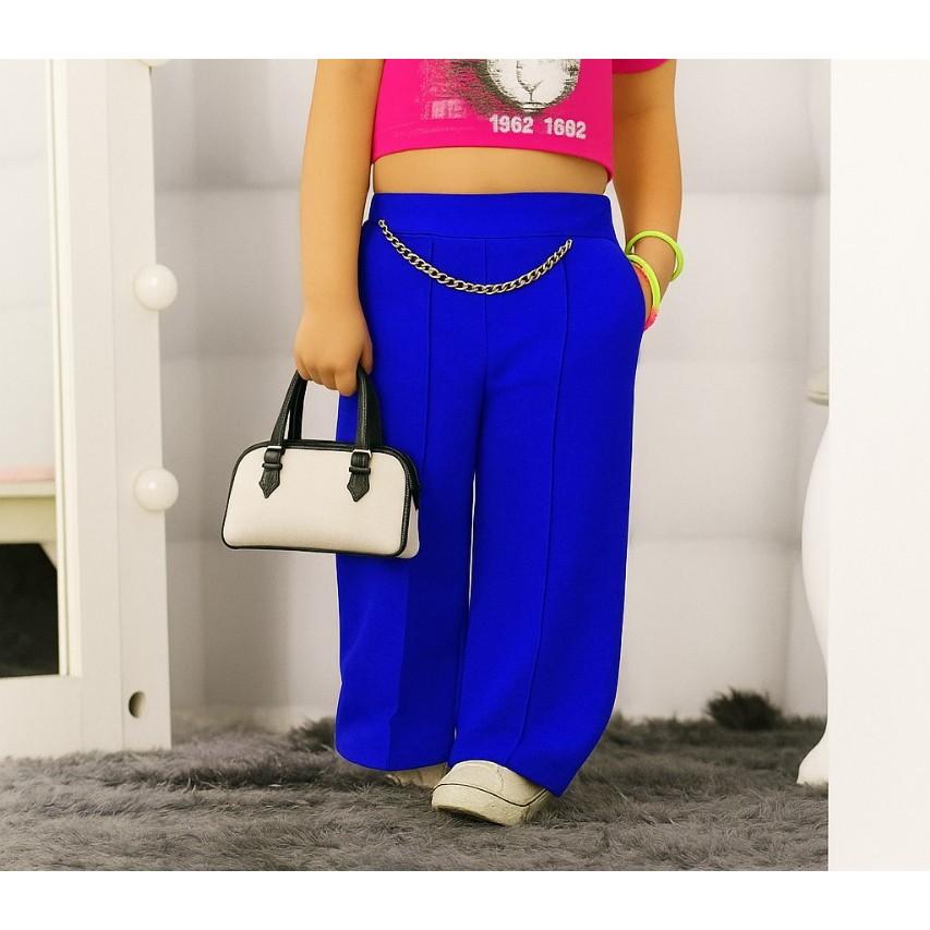 Calça Infantil Pantalona Duna Com Corrente Novidade Estilosa Moderna Moda Blogueirinha