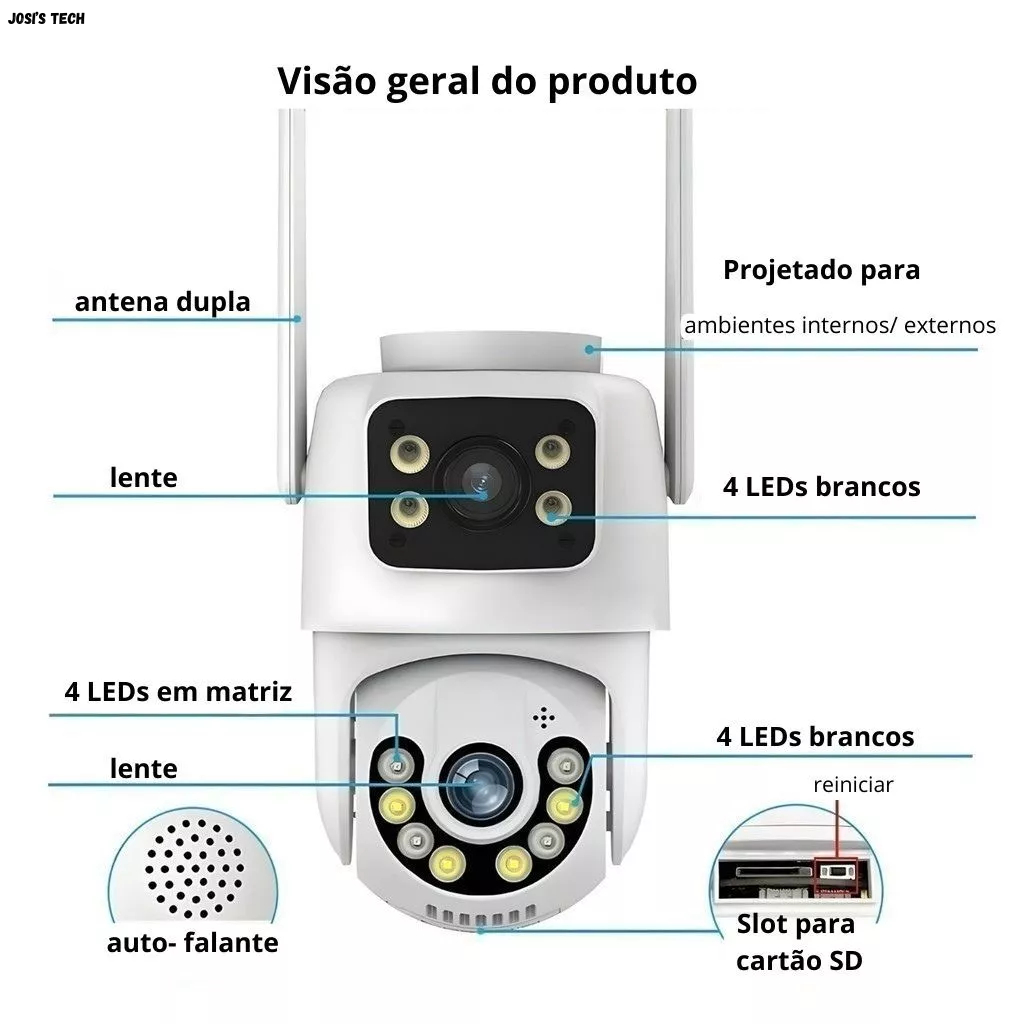 Câmera de Segurança WiFi com Visão 360° IP66 para Proteção Total Lente Dupla A prova De agua