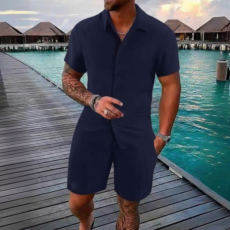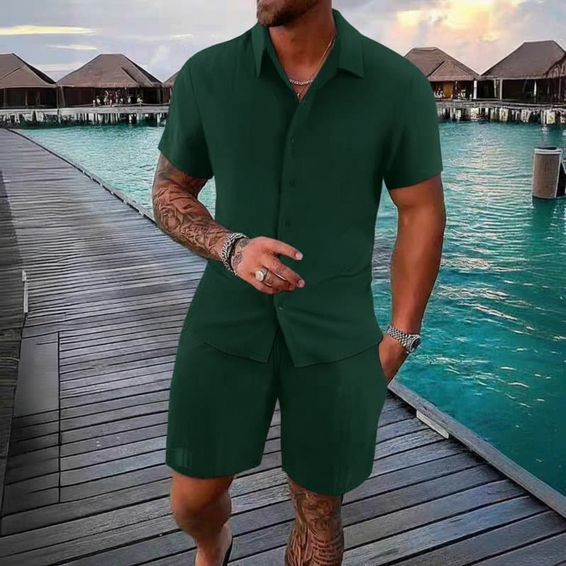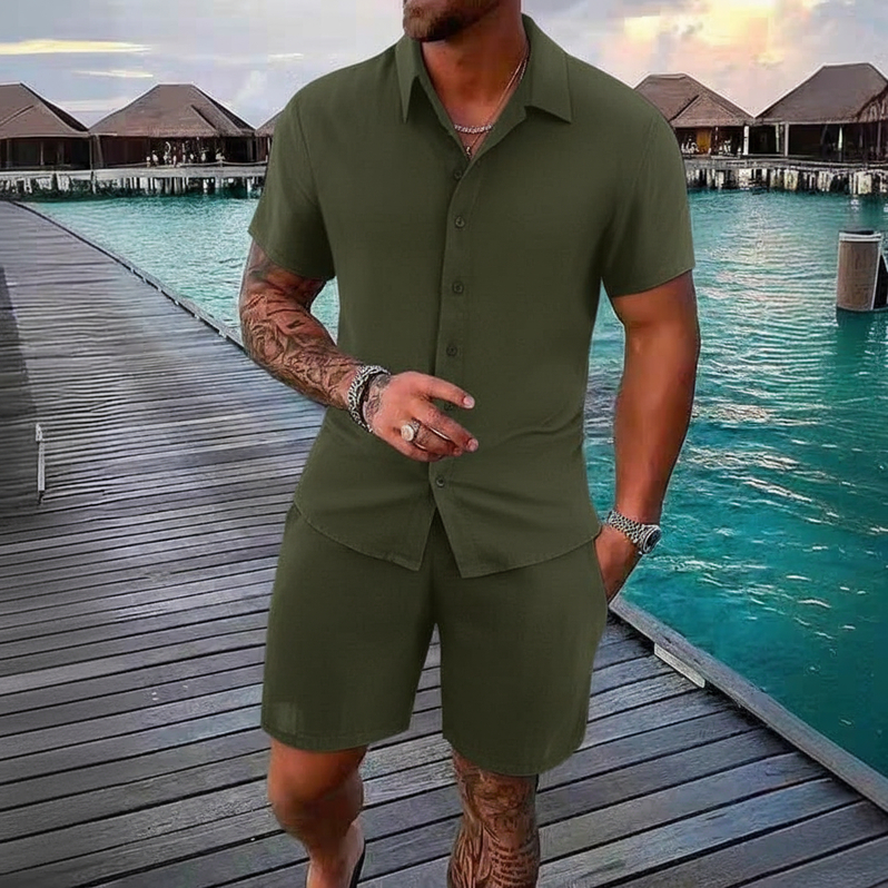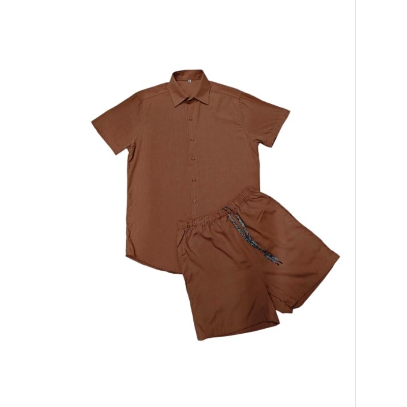 Conjunto Camisa e Short Liso Adulto Masculino Tecido de Viscose