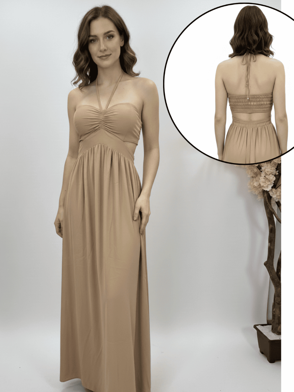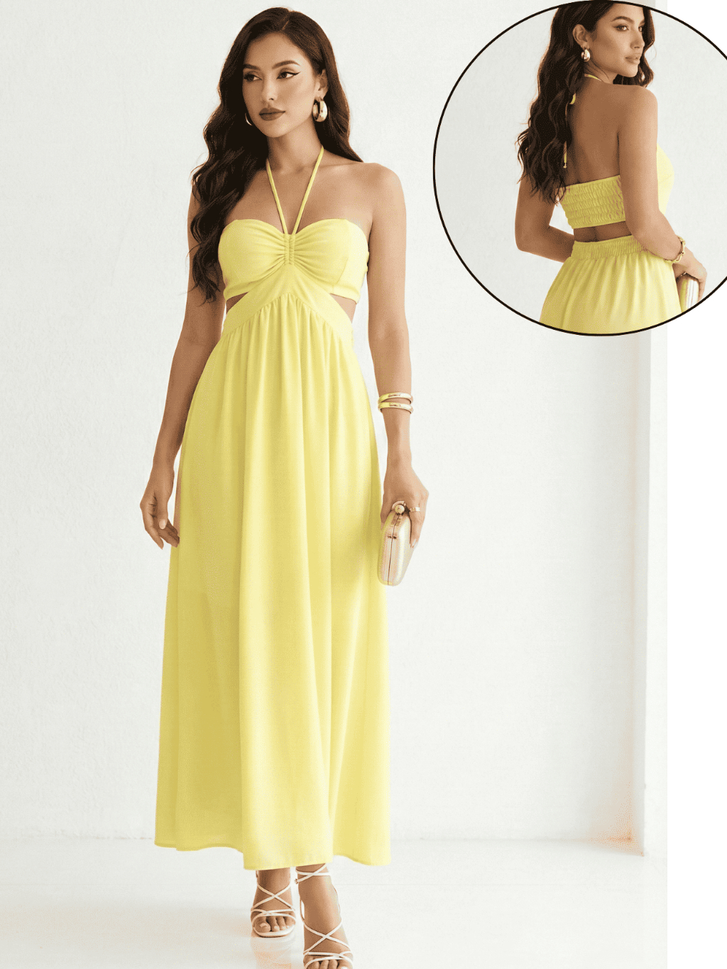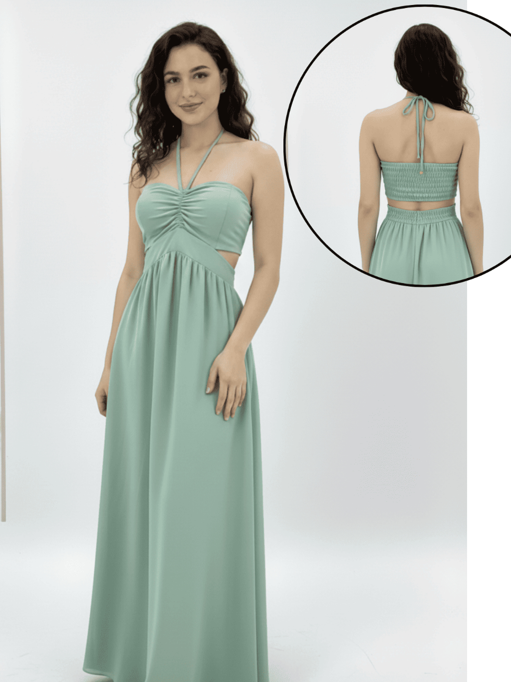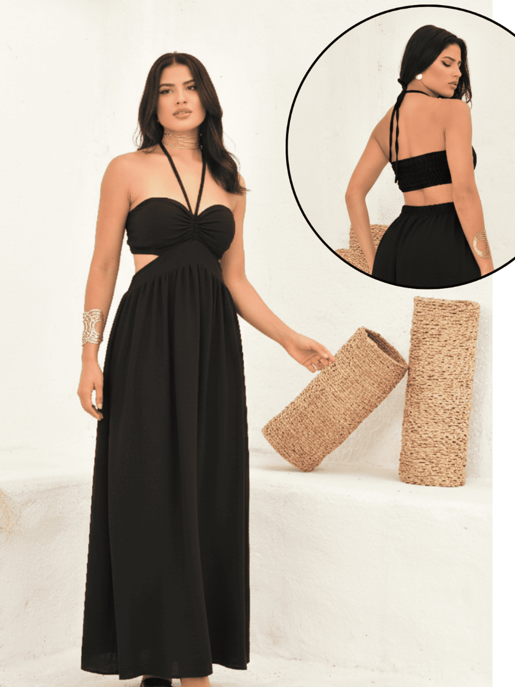 Vestido Longo Elegante detalhe Decote, Elastéx traseiro Atemporal .