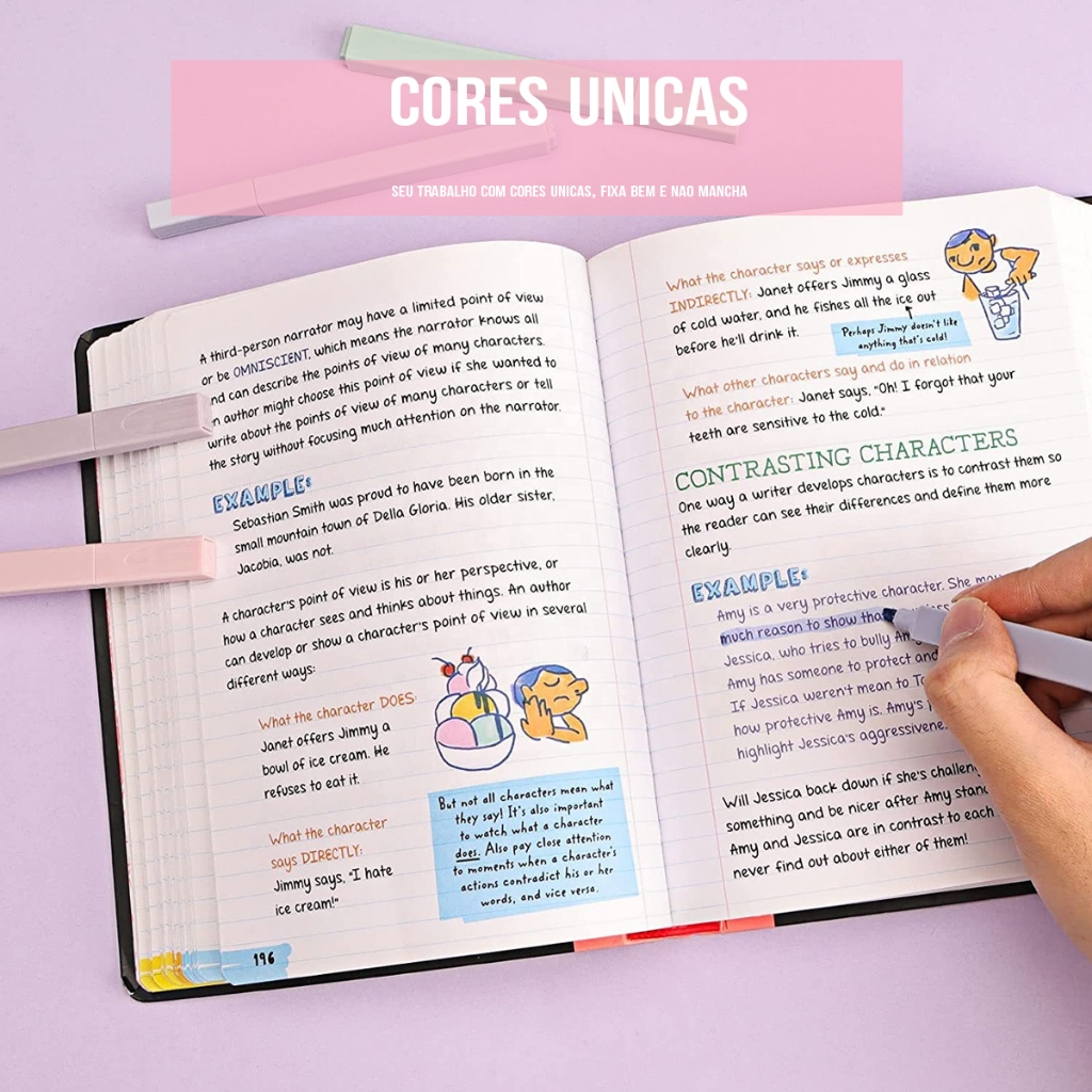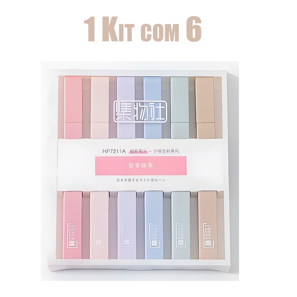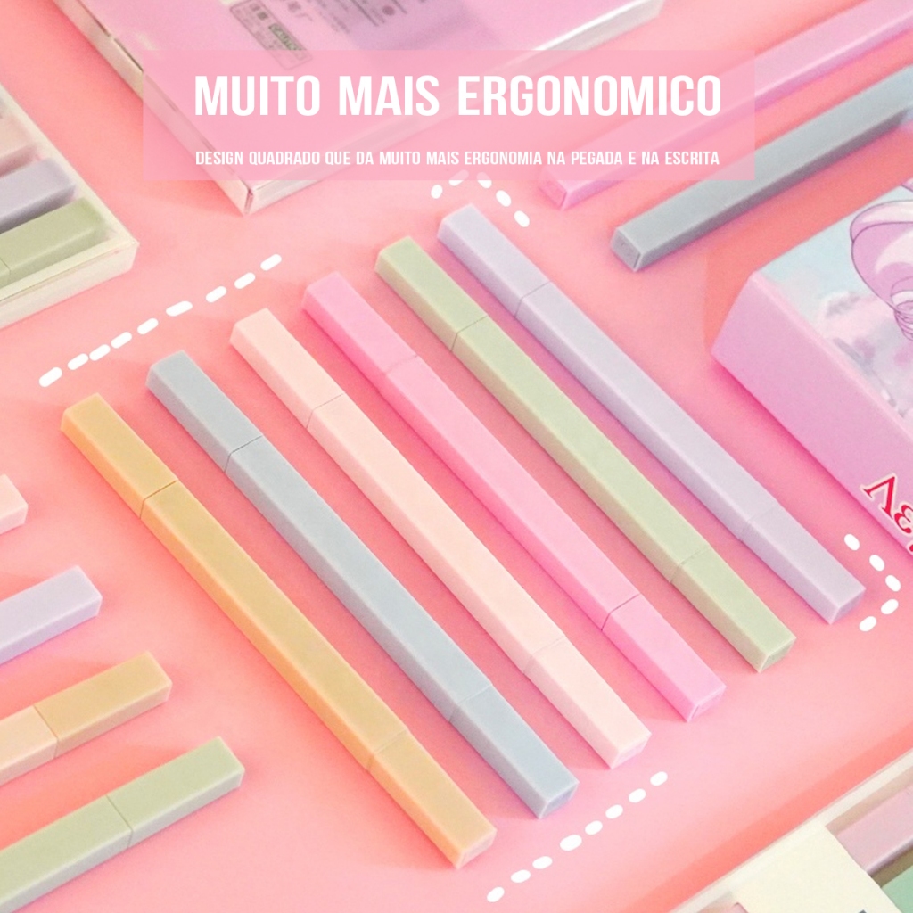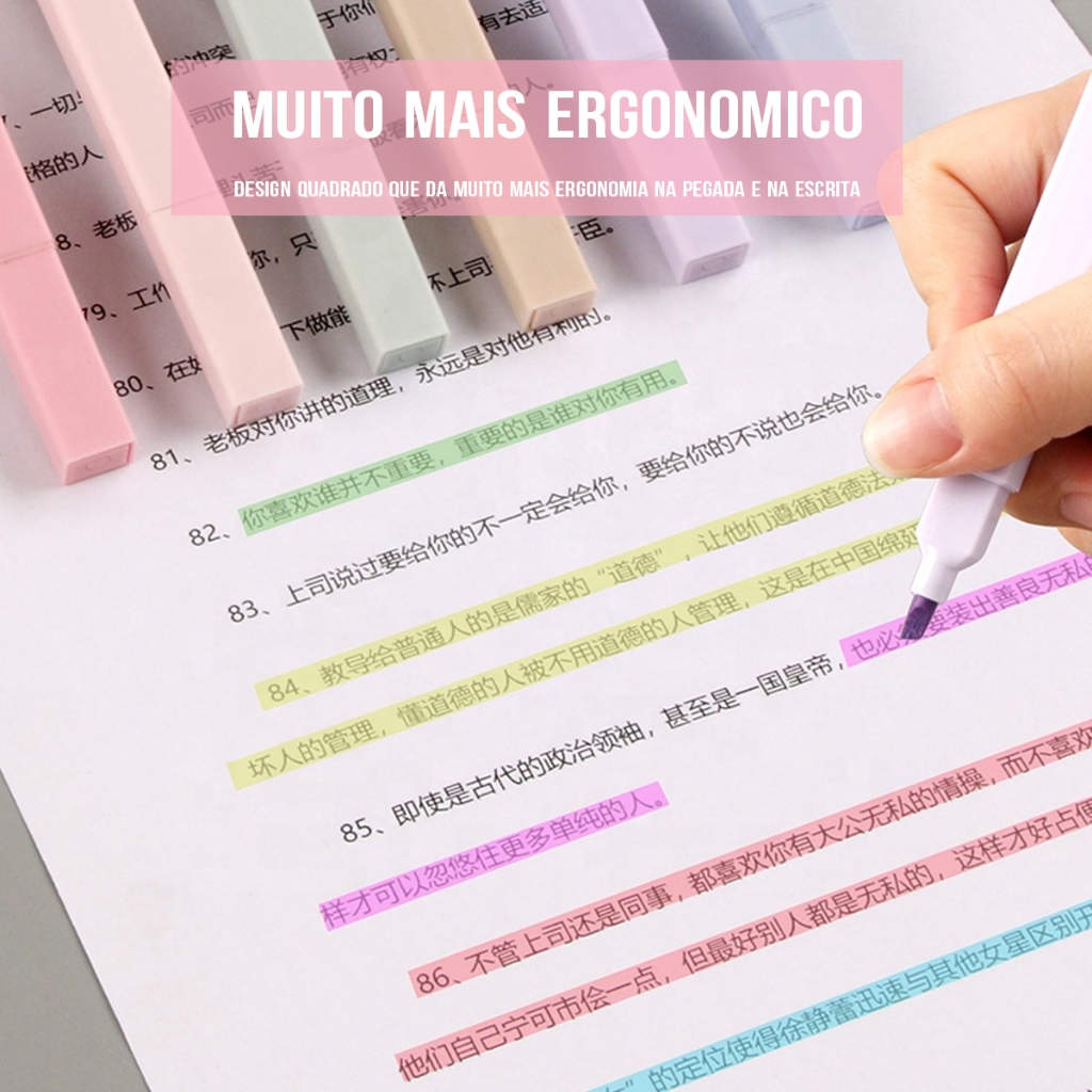Kit 6 Marca Texto Tons Pastel Caneta Colorida Quadrada Papelaria Fofa Divertida TikTok Escolar