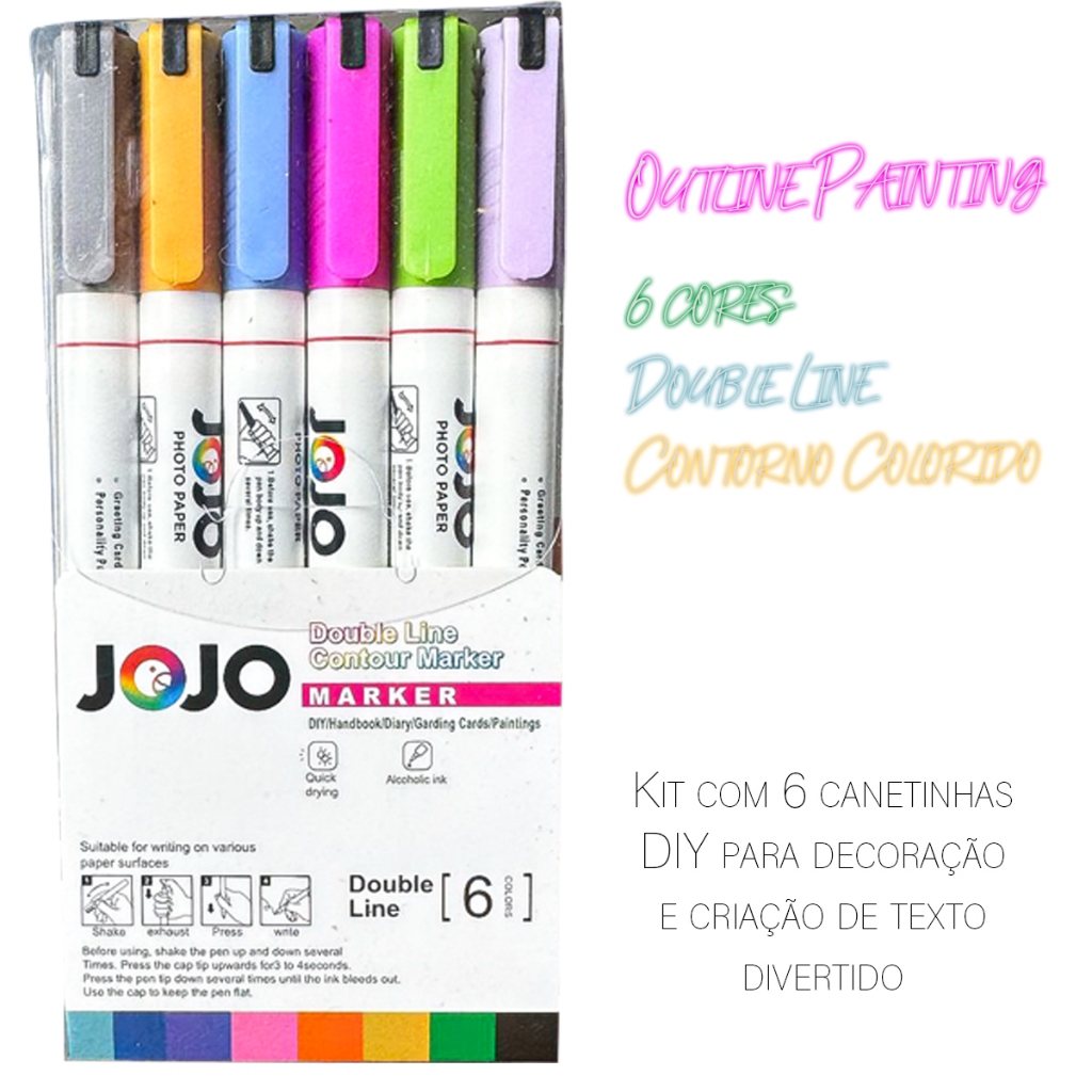 Kit Caneta Outline Marker Linha Dupla Metálica Arte Contorno Dual Line Papelaria Fofa Kawaii