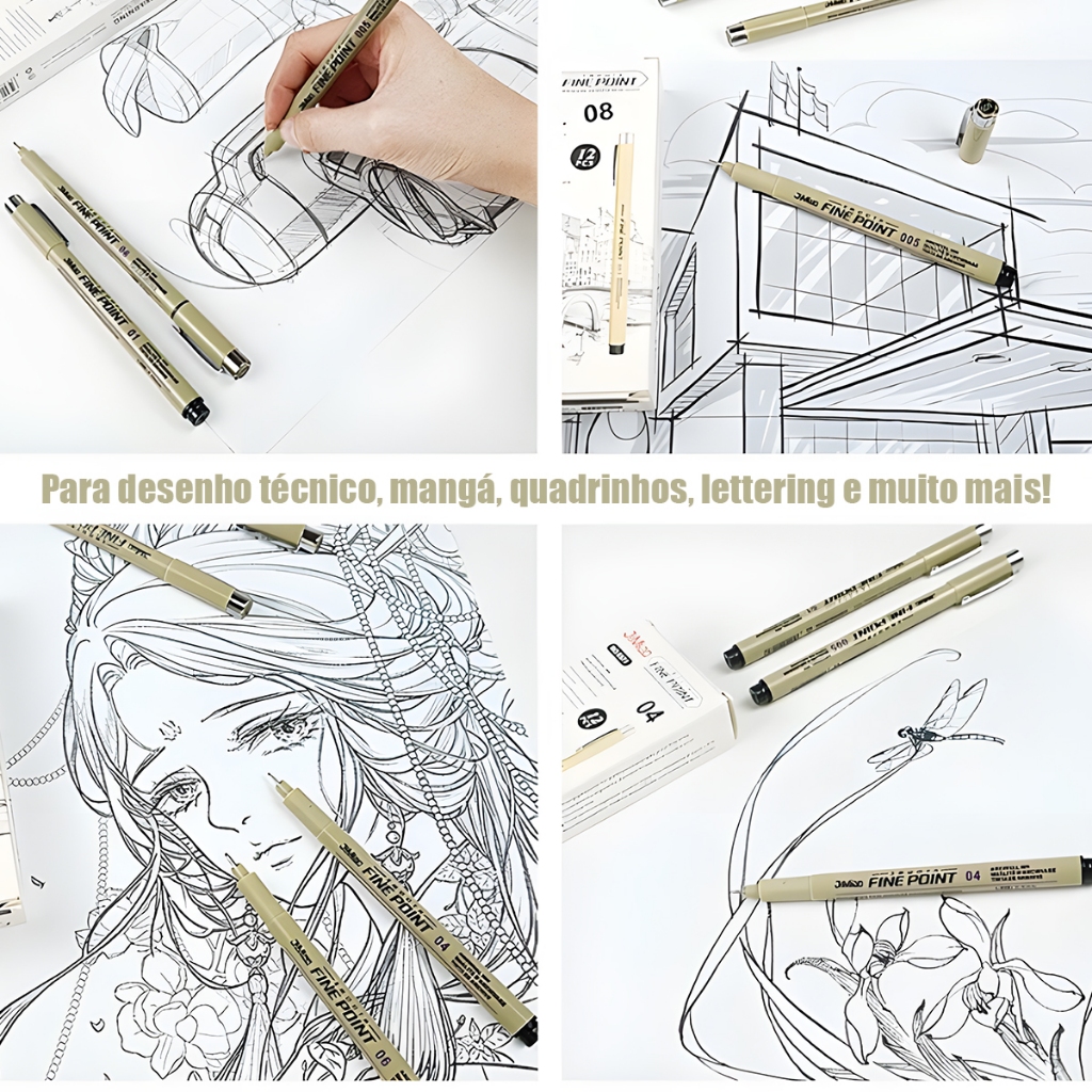 Caneta Técnica Fineline Preta Nanquim Profissional para Mangá, Desenho Técnico, Arte e Lettering