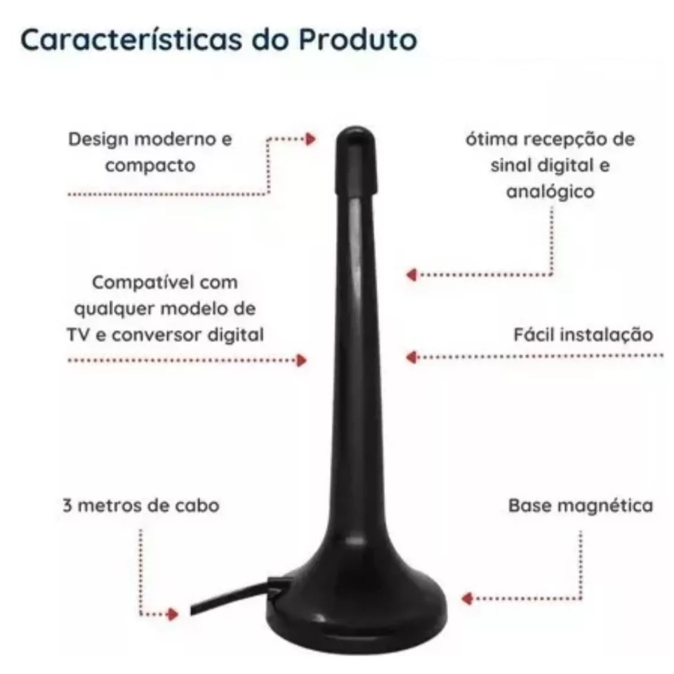 Antena De Tv Digital Interna Hdtv Cabo De 3 Metros Altomex Al-3001