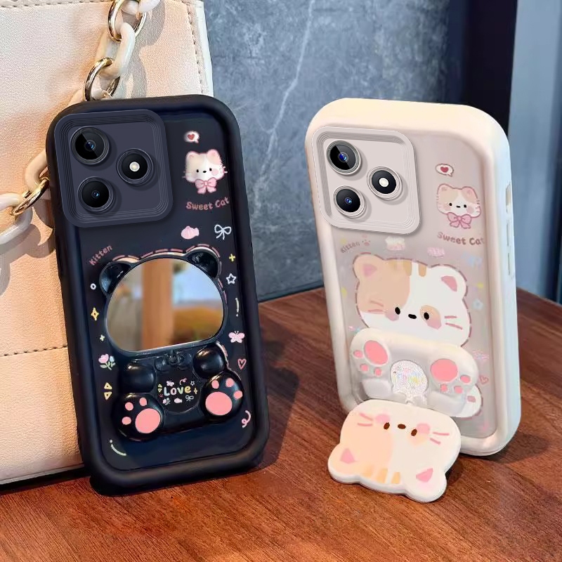 Capa Para realme note 60 60X De Telefone Softcase Silicone À Prova De Choque Novo design Estético Gato De Desenho Animad