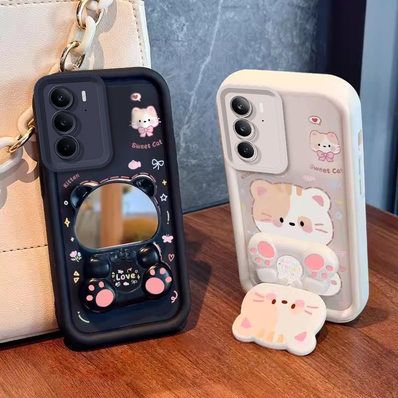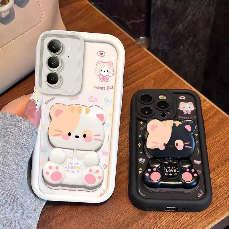 Capa Para realme C75 De Telefone Softcase Silicone À Prova De Choque Novo design Estético Gato Dos Desenhos Animados Com