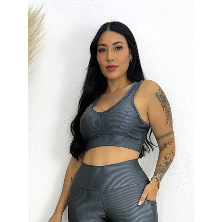 Top Cropped Fitness Feminino Canelado Premium Alta Sustentação Academia Arsenall