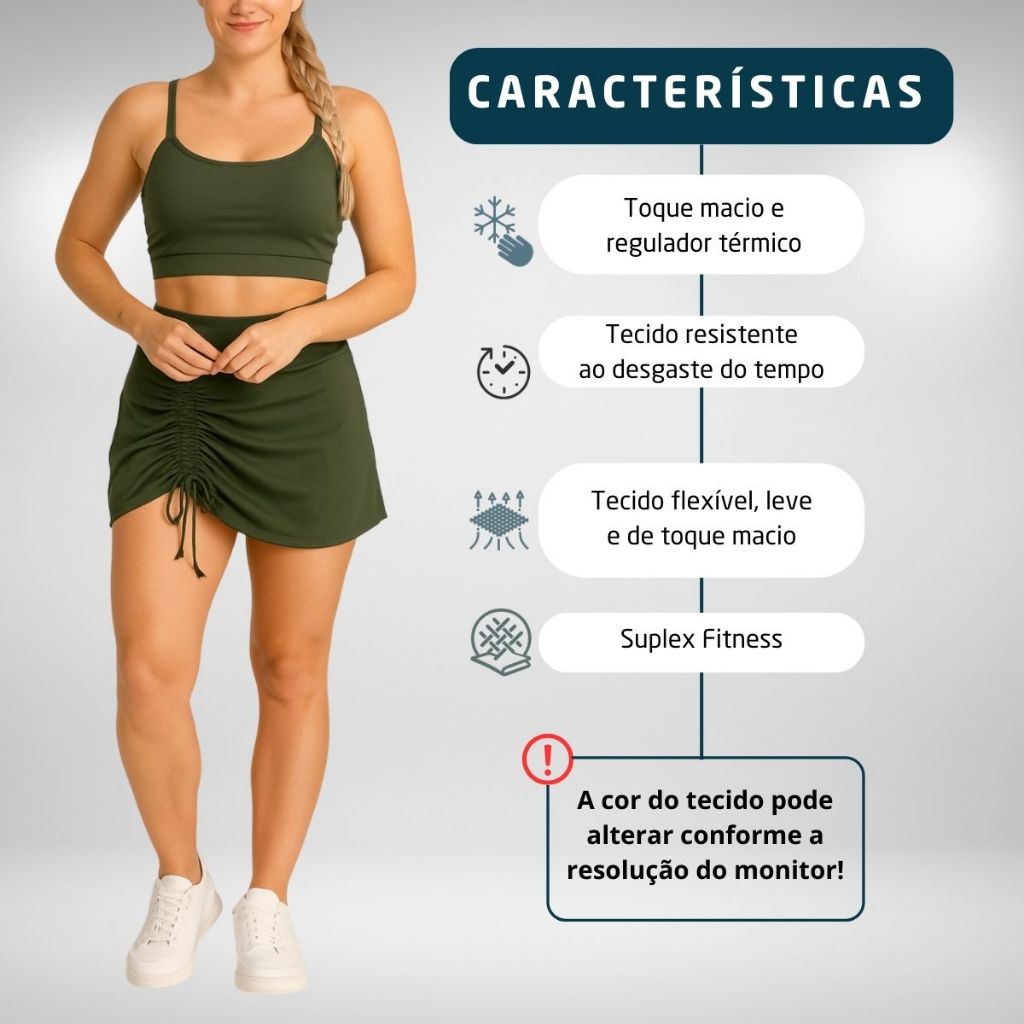 Short Saia Feminino Tapa Bumbum Fitness Franzido Cordinha