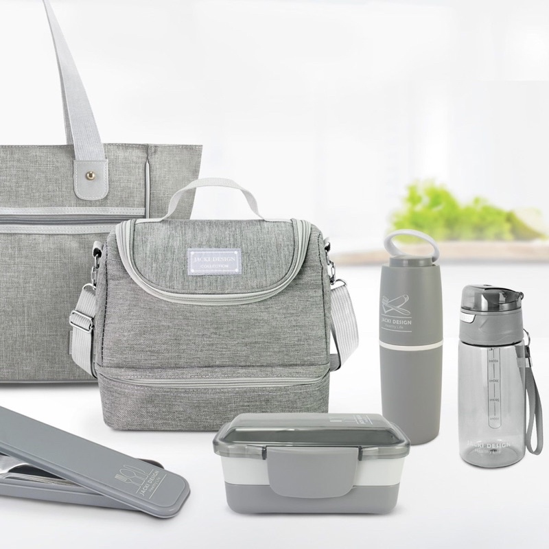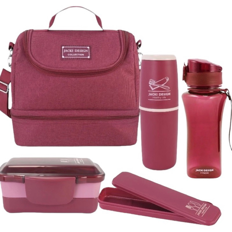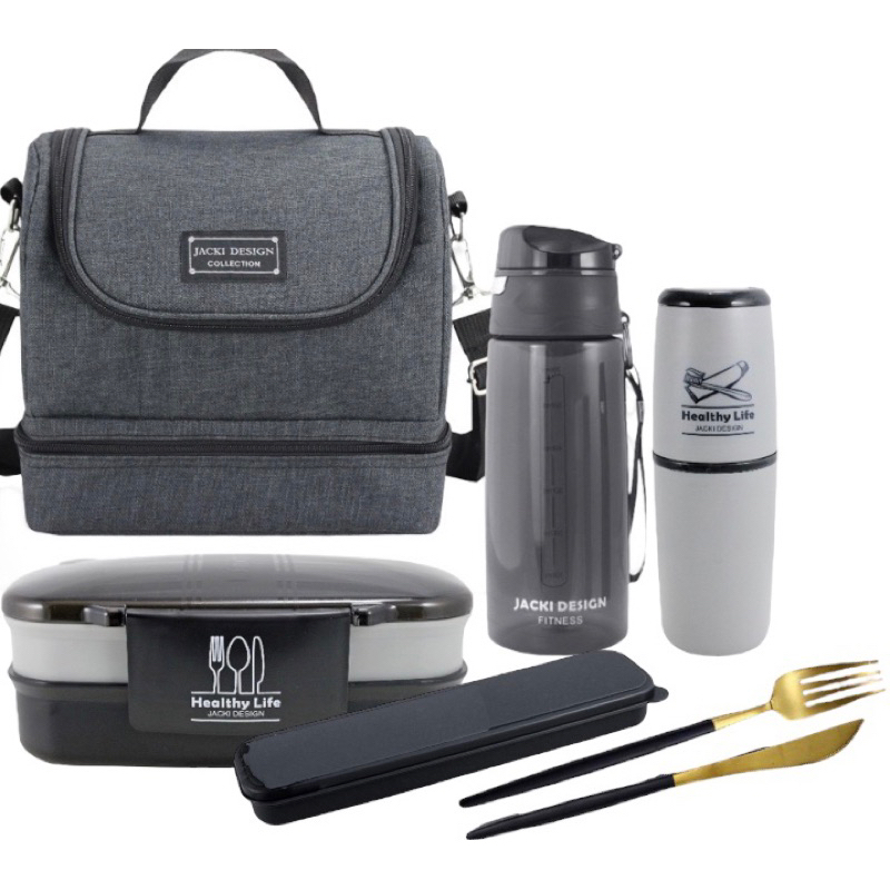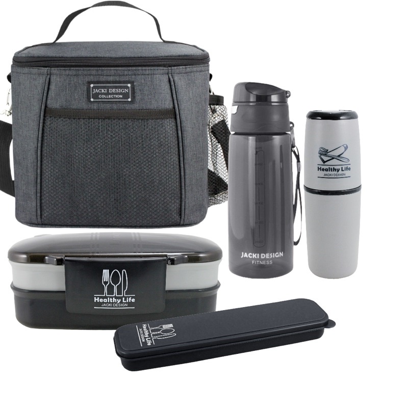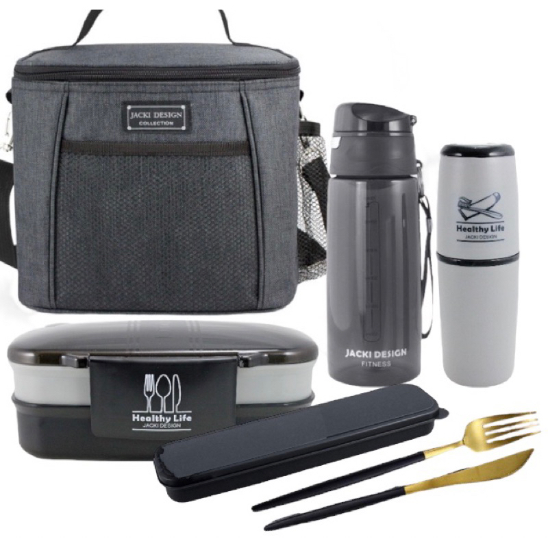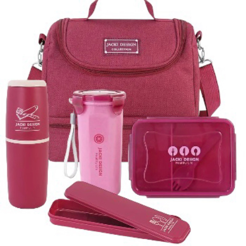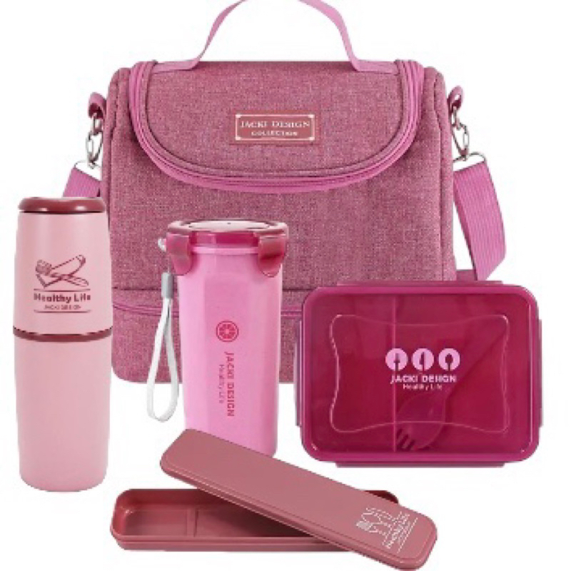 Kit Marmita Térmica Coleção Joy Jacki Design 5 peças Fitness Livre de BPA Praticidade Porta escova Bolsa térmica Garrafa