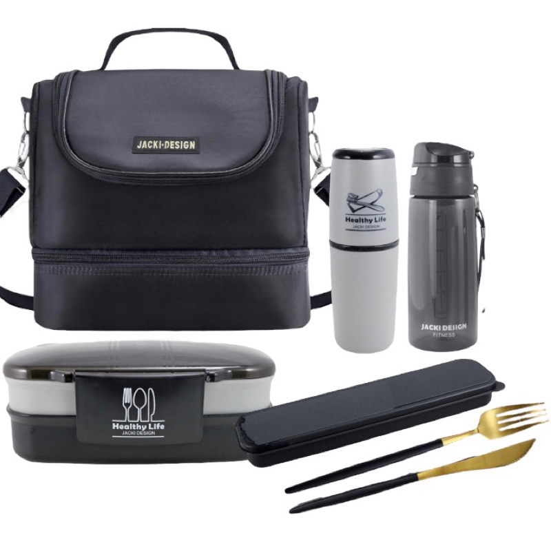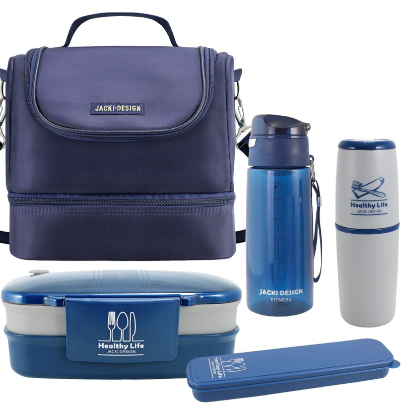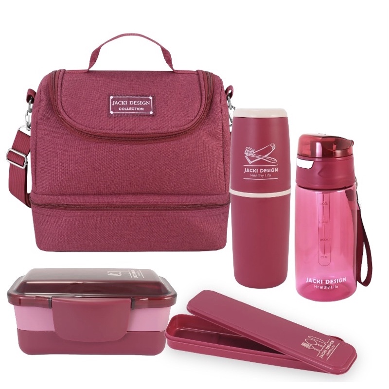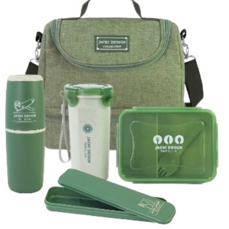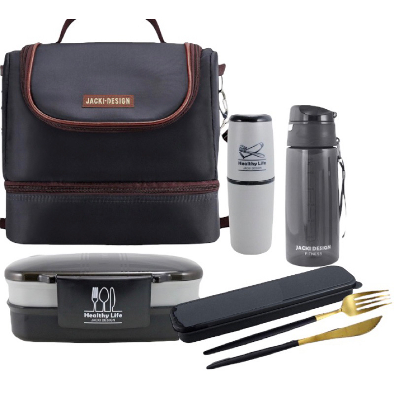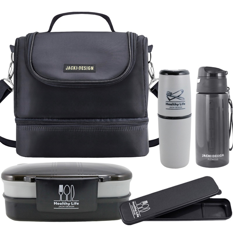 Kit Marmita Térmica Coleção Joy Jacki Design 5 peças Fitness Livre de BPA Praticidade Porta escova Bolsa térmica Garrafa