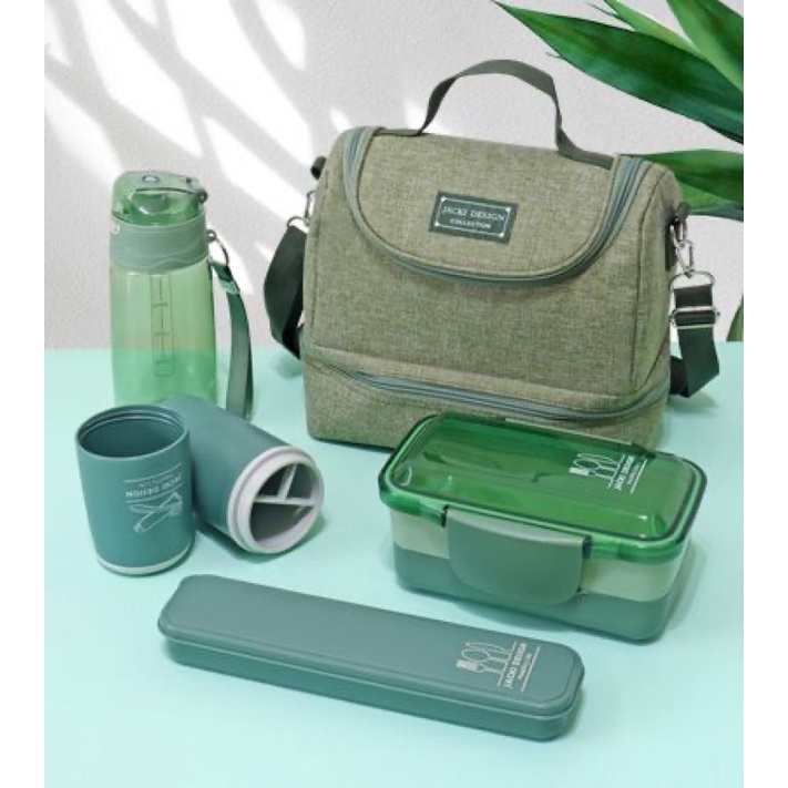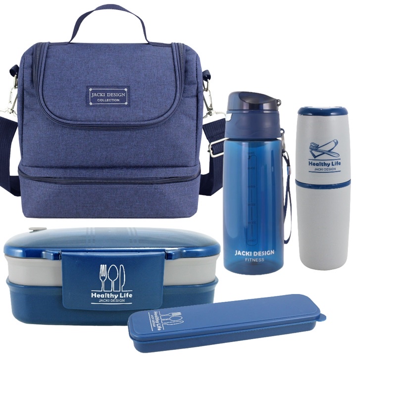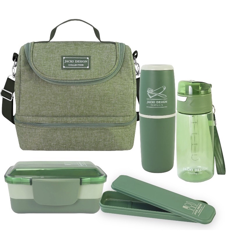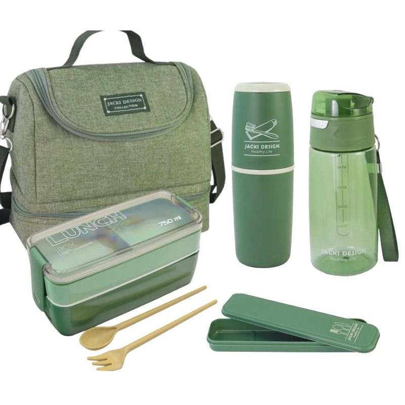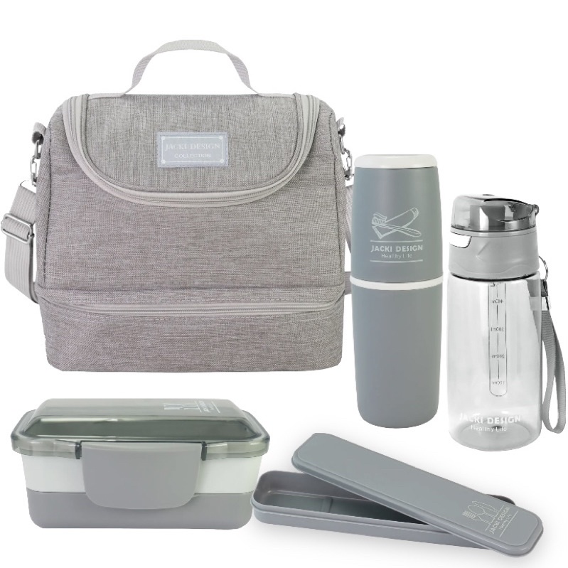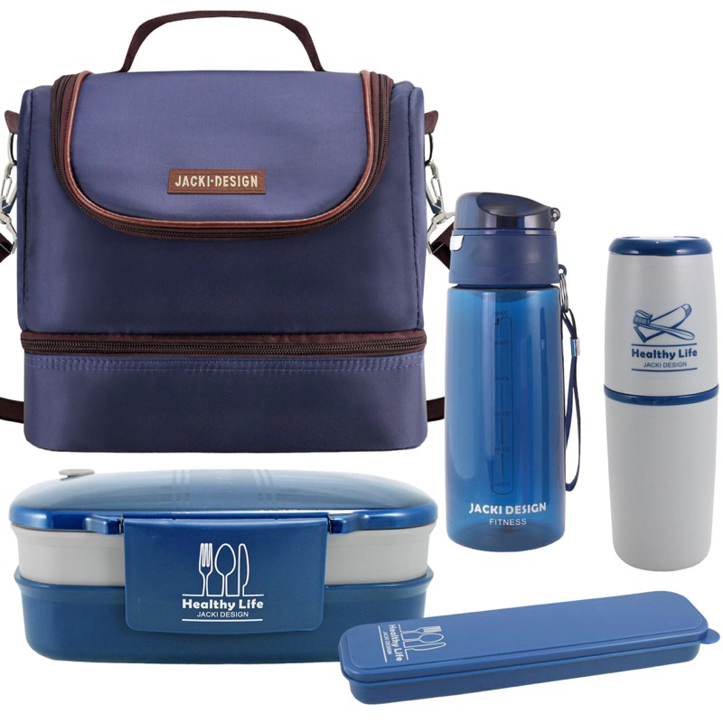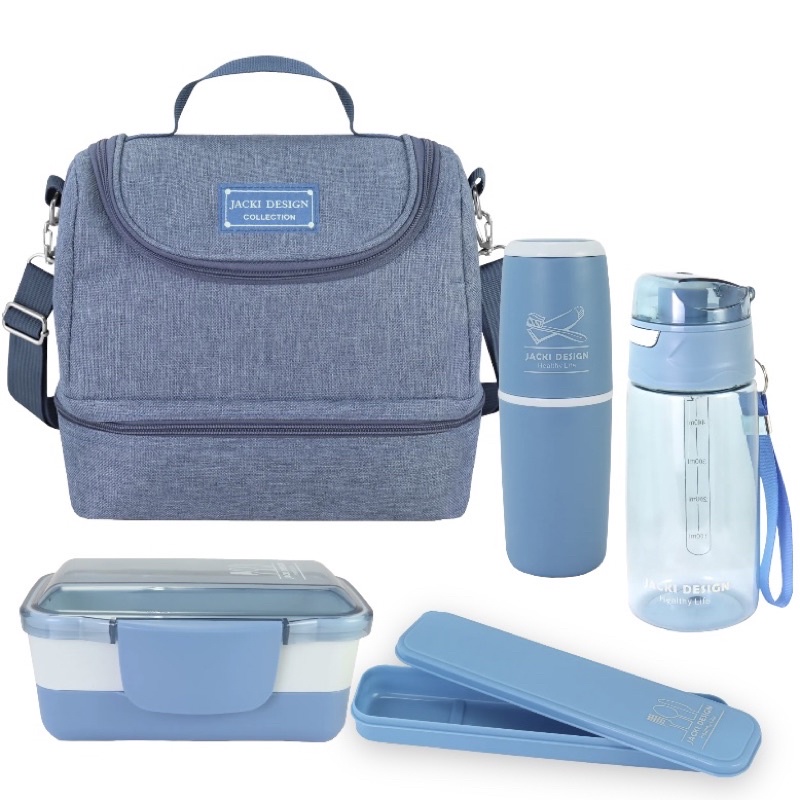 Kit Marmita Térmica Coleção Joy Jacki Design 5 peças Fitness Livre de BPA Praticidade Porta escova Bolsa térmica Garrafa