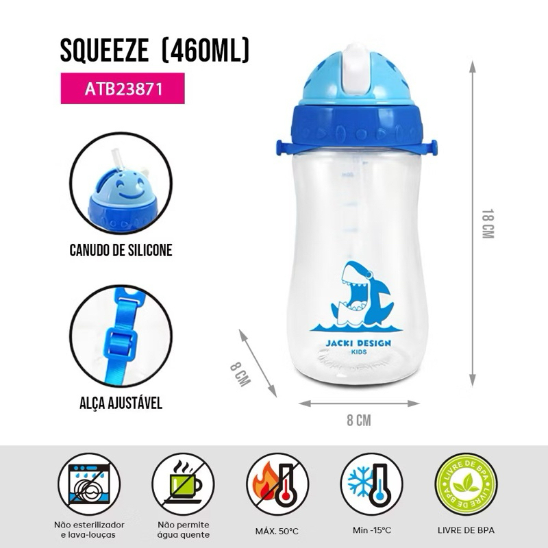 Garrafa Squeeze com Canudo Silicone Portátil Infatil para Suco Água com Alça Lateral Escolar