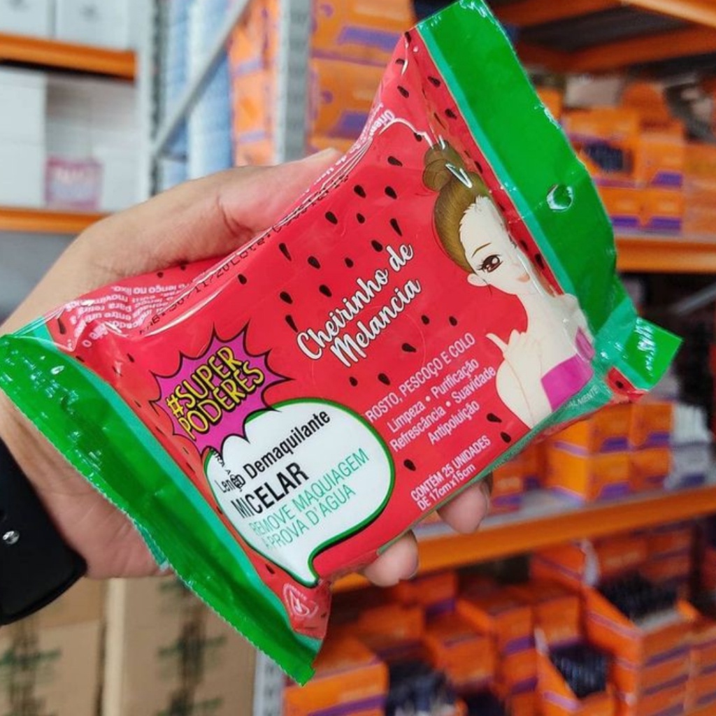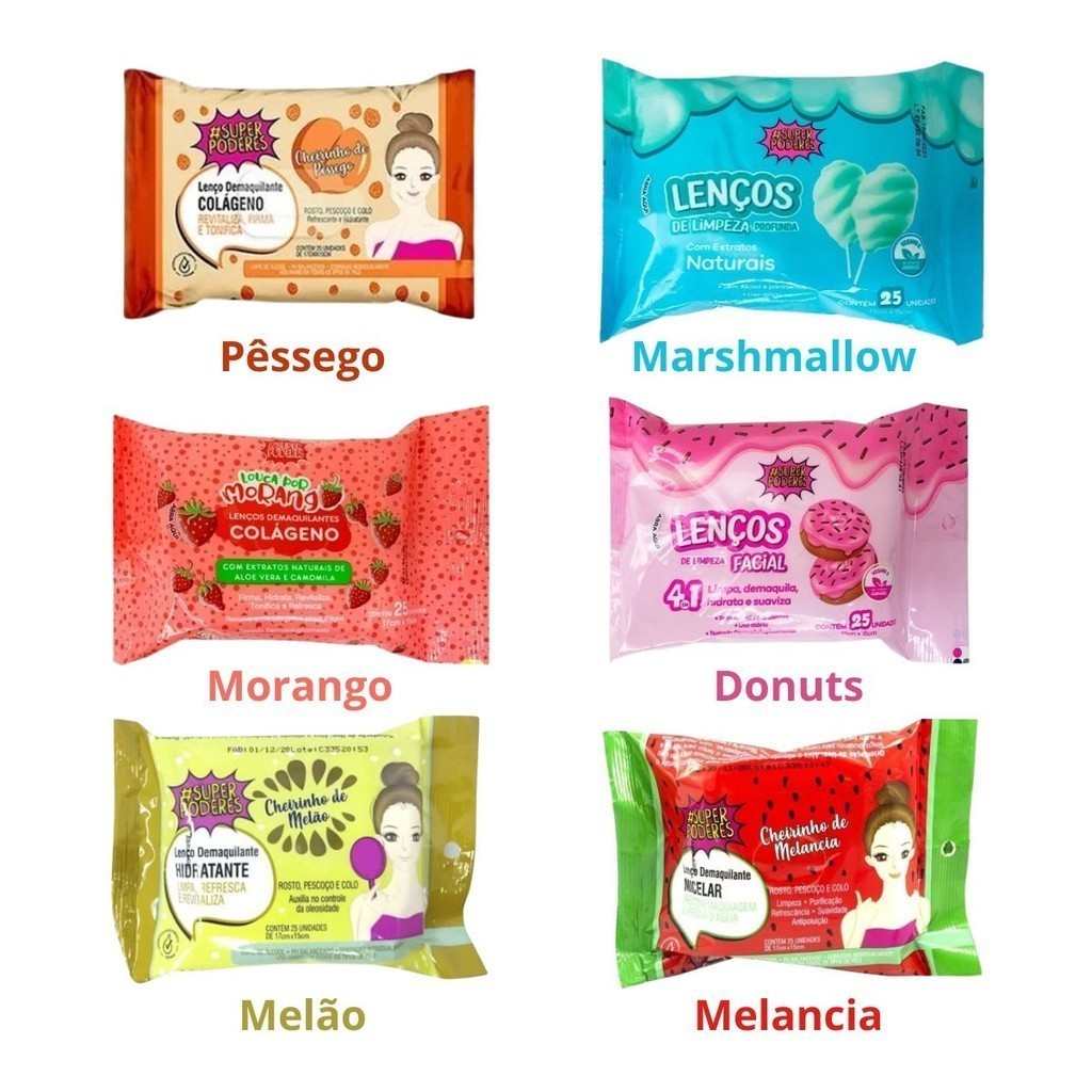 Kit 3 Lenço De Limpeza Facial Demaquilante Melão, Pêssego, Melância e Donut Super Poderes c/ 25 unidades