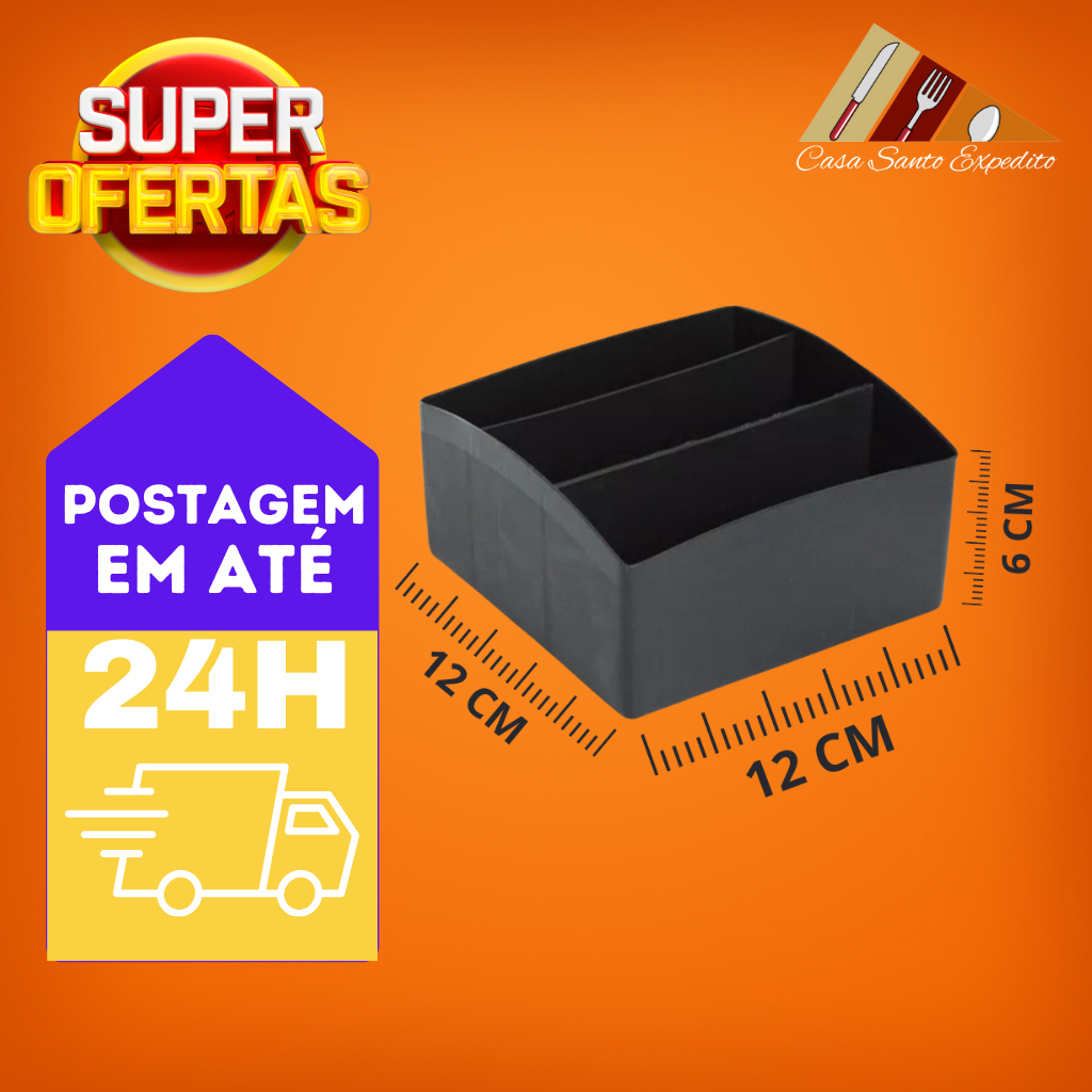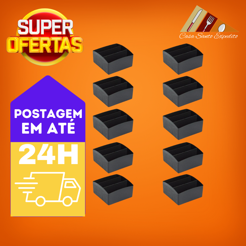 Kit com 10 Porta Guardanapos e Sachês 3 Divisórias Bar Restaurante Lanchonete Preto