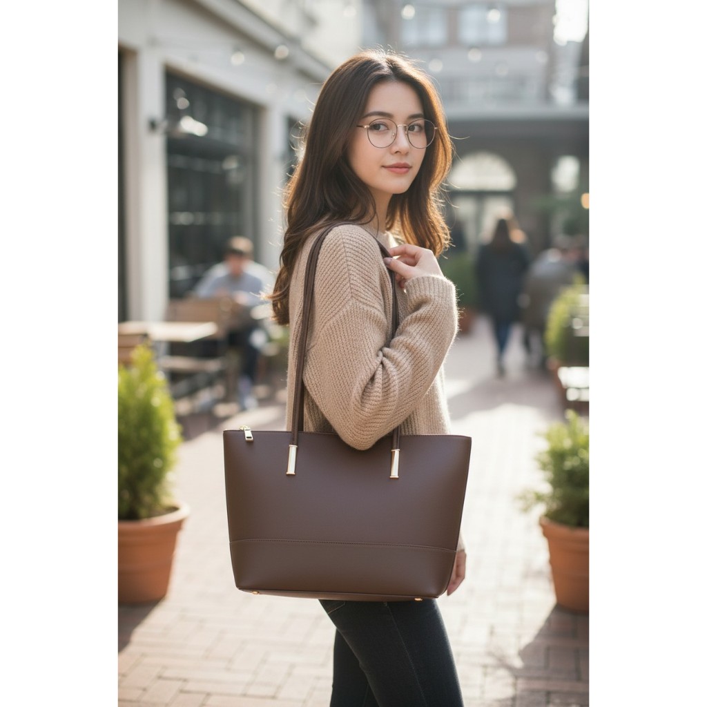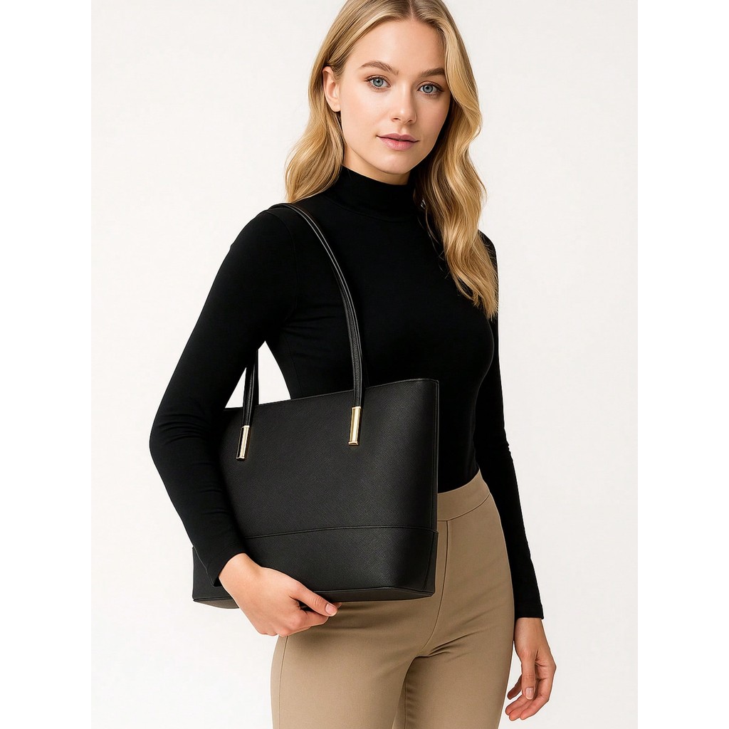Bolsa Tote Clássica para Trabalho Couro PU Elegante de Grande Capacidade com Múltiplas Divisórias