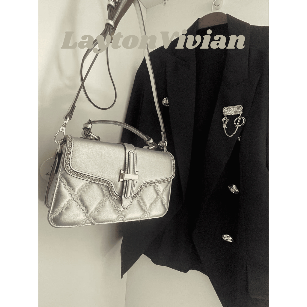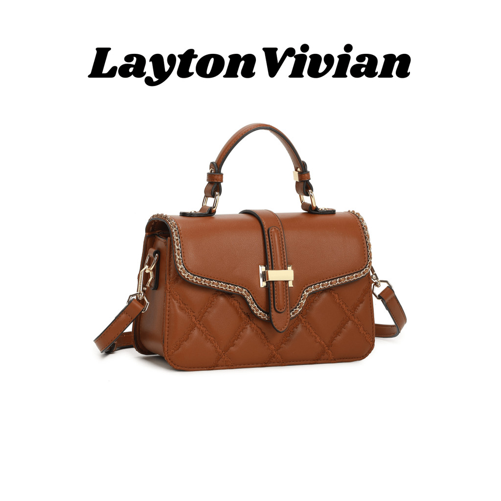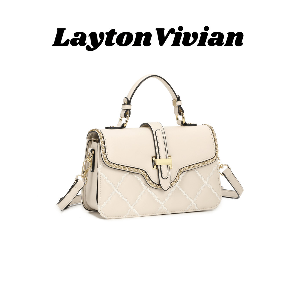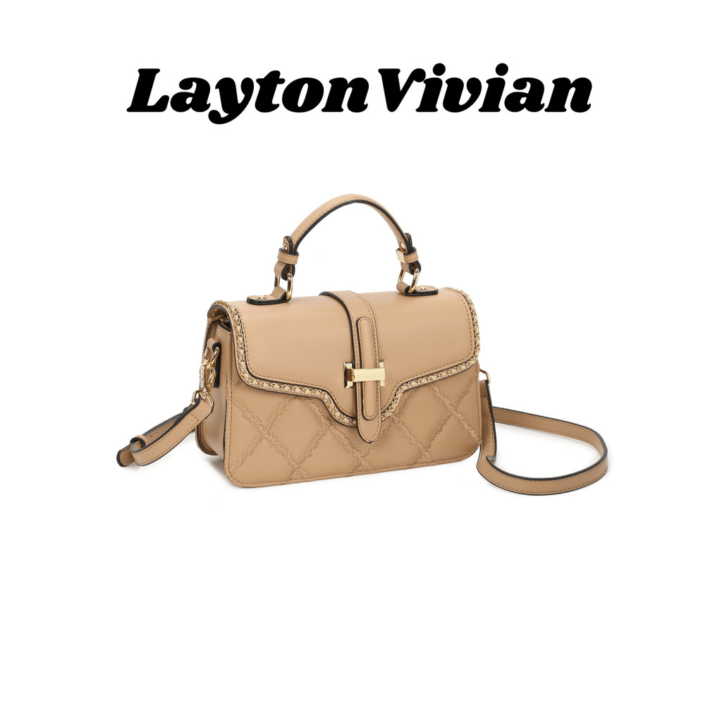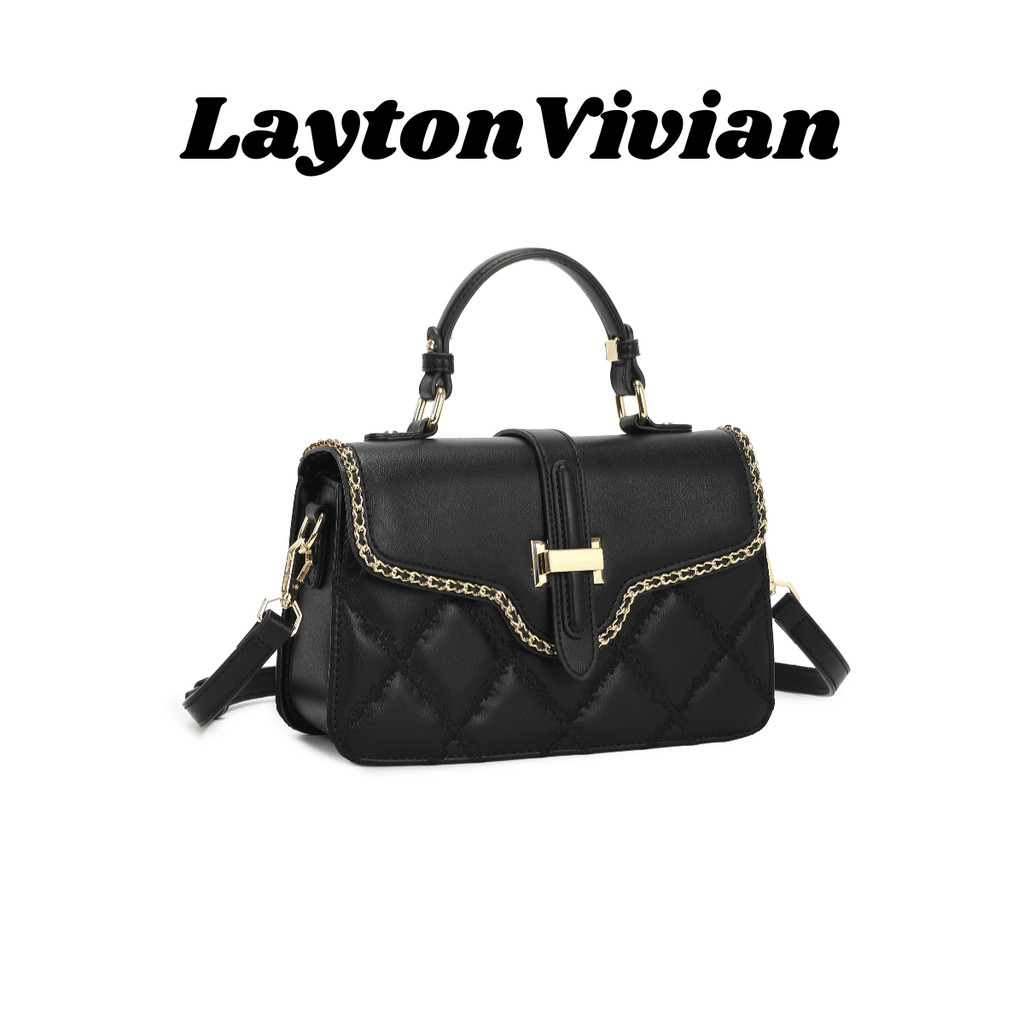 Bolsa feminina elegante LaytonVivian Edição Prestígio: Estilo baú chinês múltiplos compartimentos, alça de mão reforçado