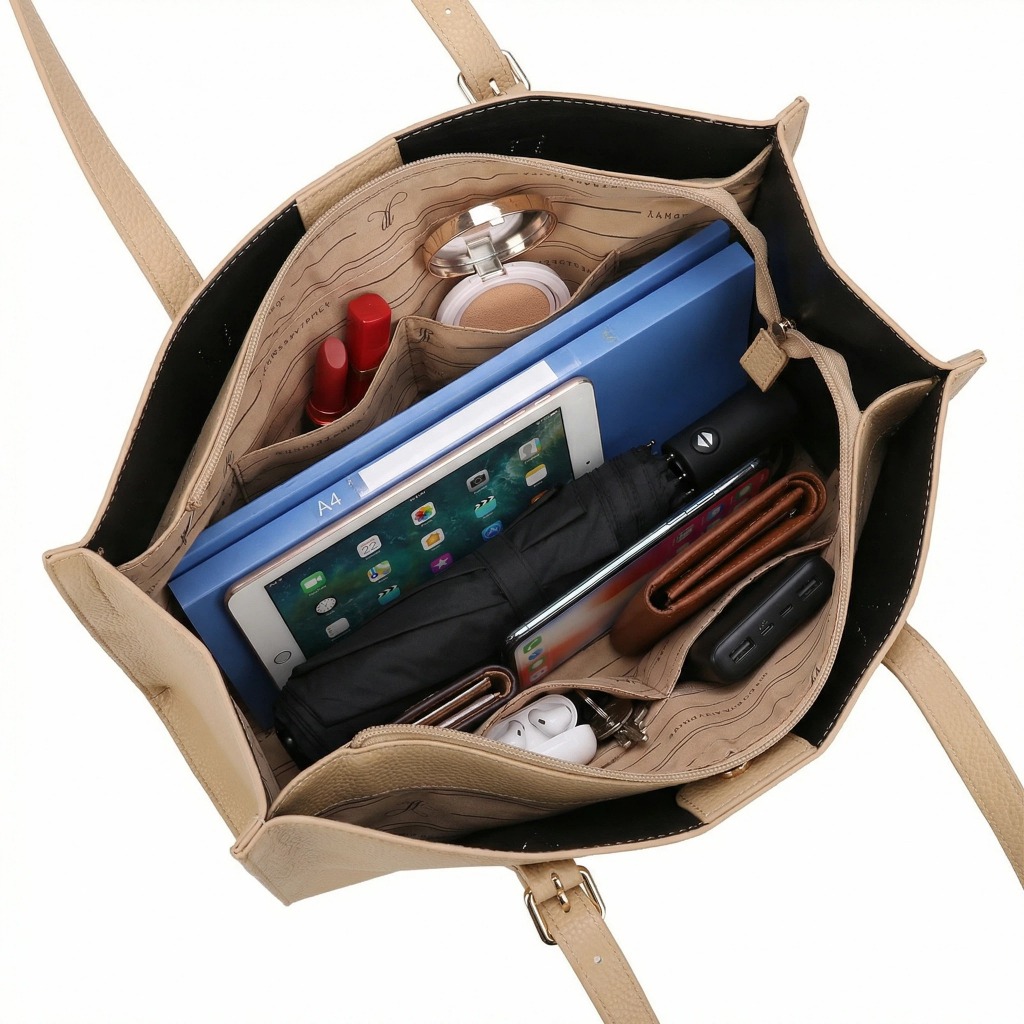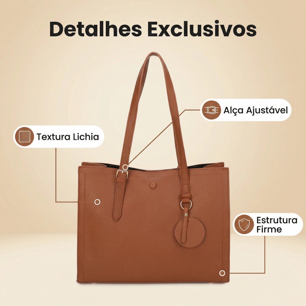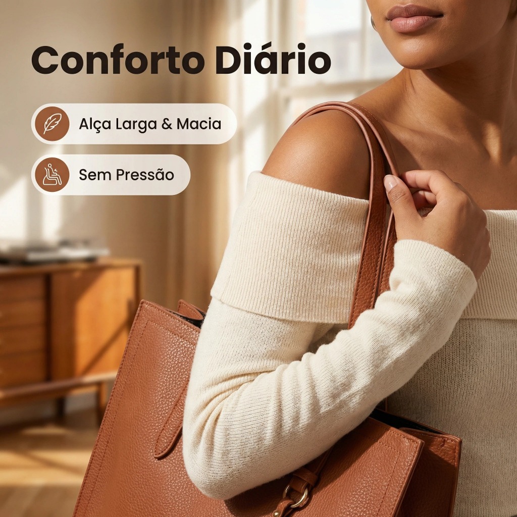 Bolsa Tote Feminina Couro PU De Ombro E Transversal Grande Espaçosa Elegante Premium para Trabalho e Dia a Dia