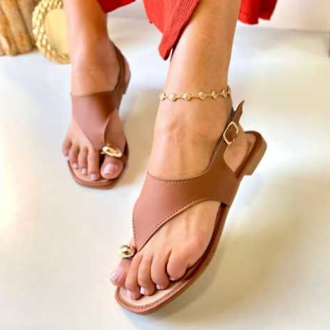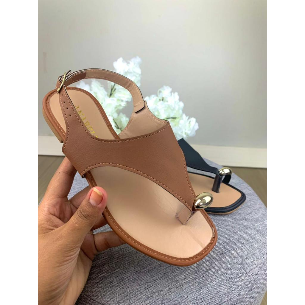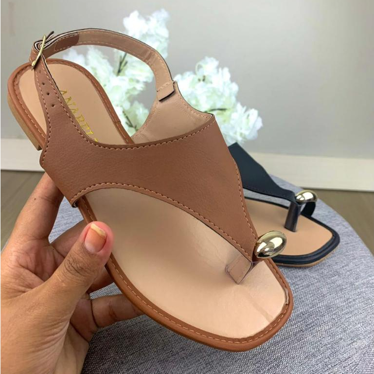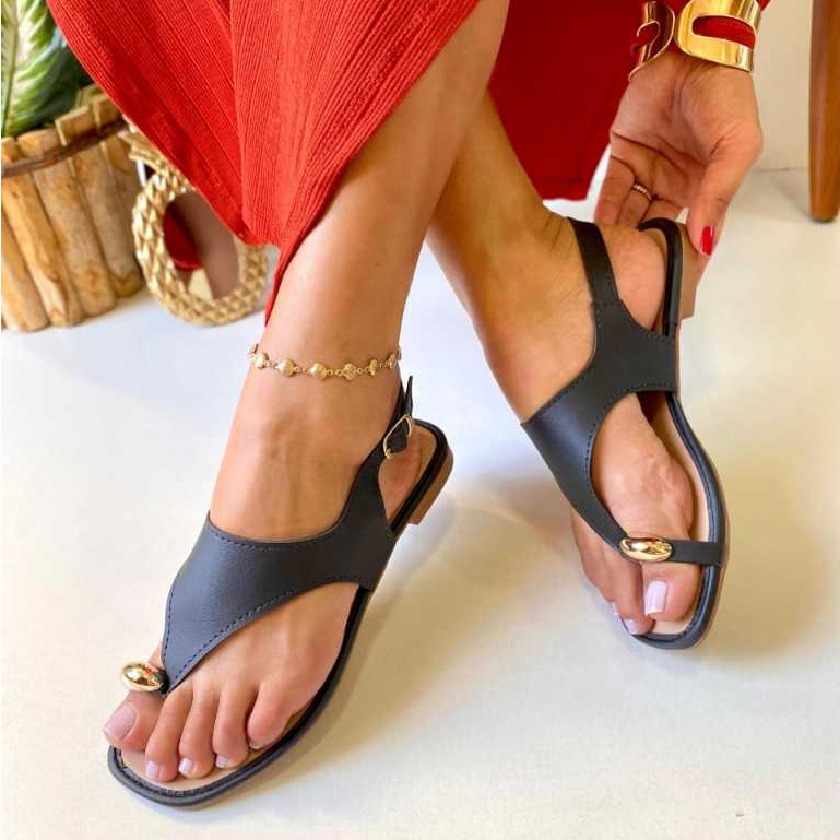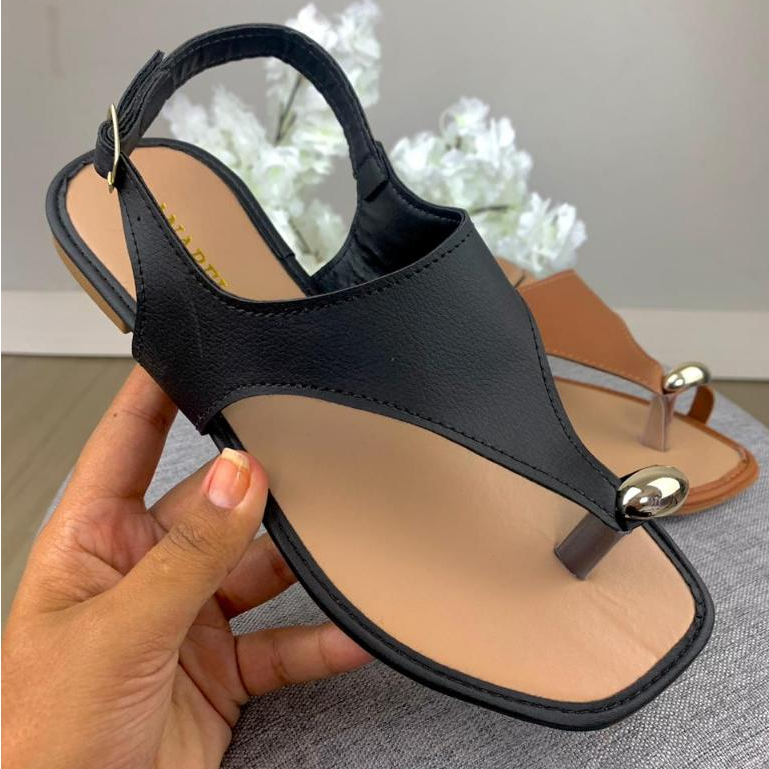 Sandalia Feminina Rasteirinha Anel Dedo Flat Leve e Confortavel