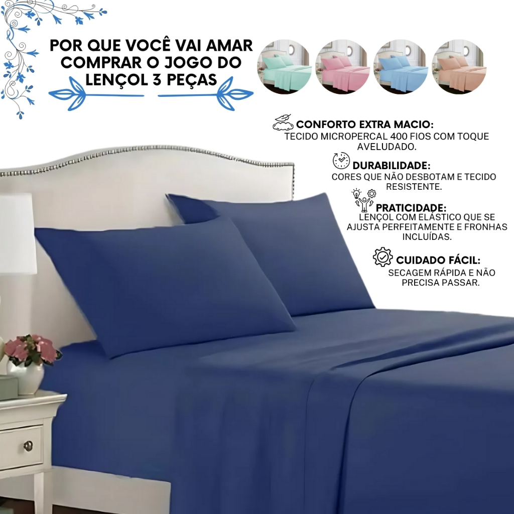Jogo de Lençol 2 ou 3 Peças 400 Fios Berço Solteiro Casal Queen ou King Micropercal