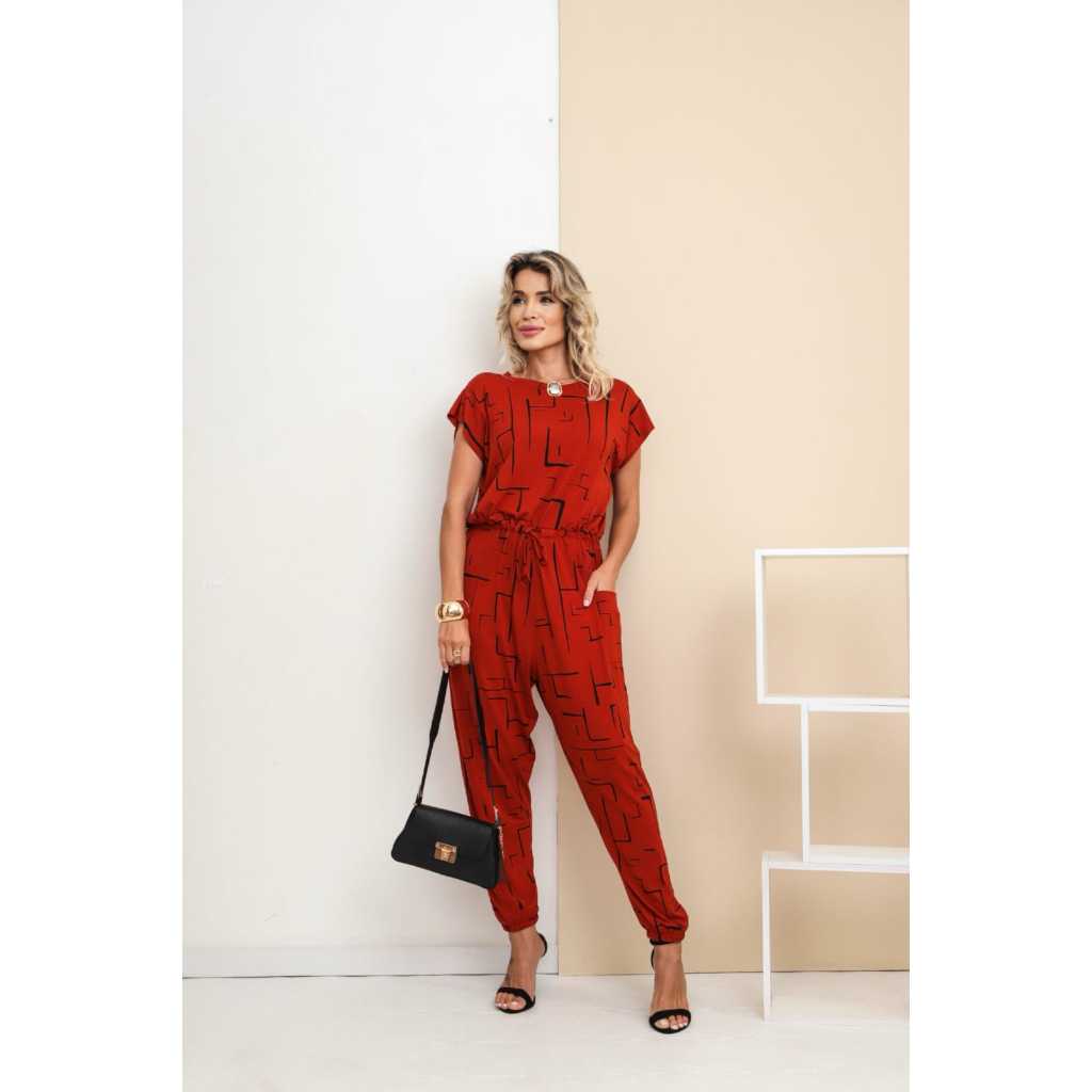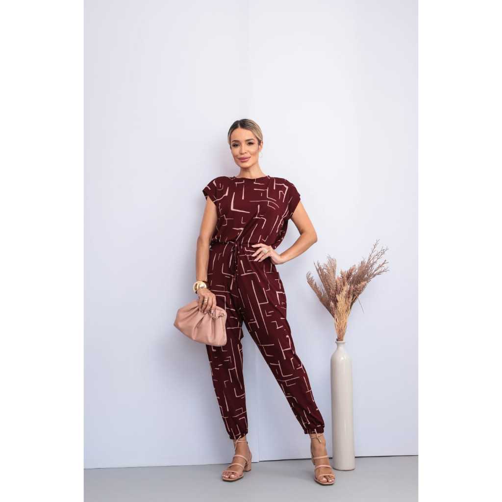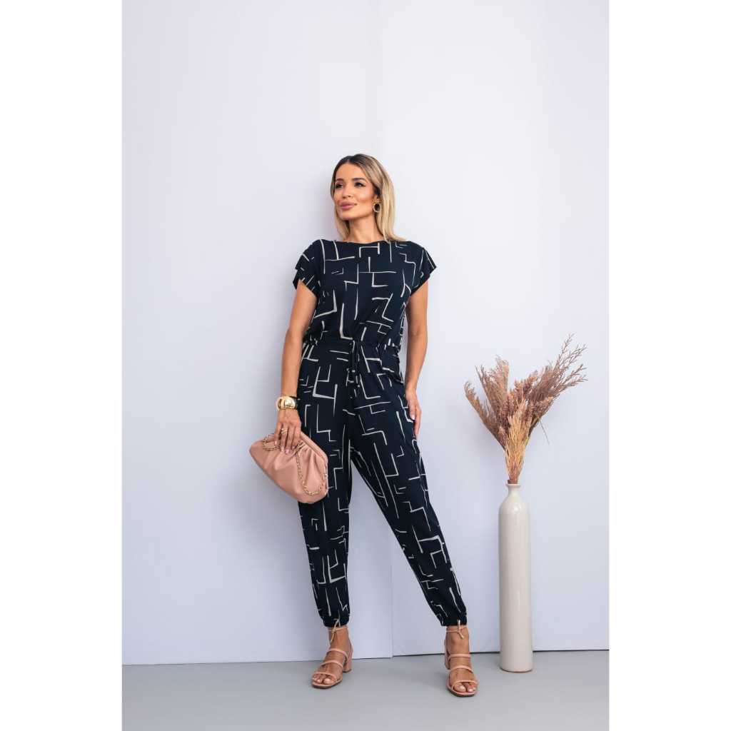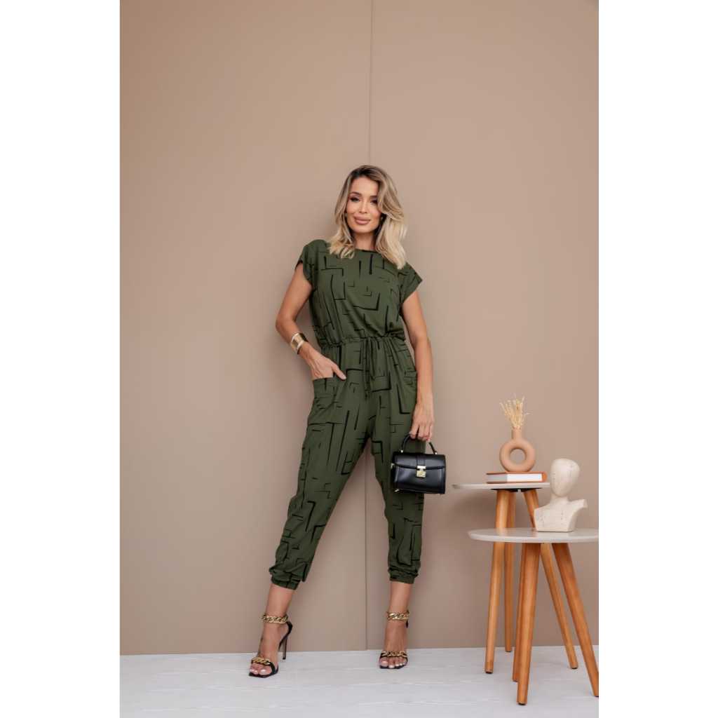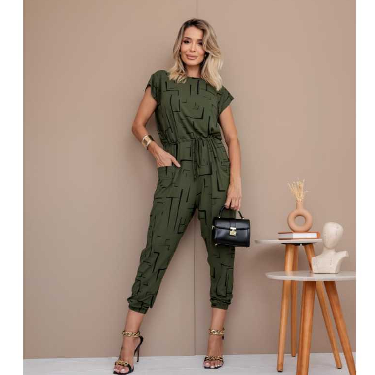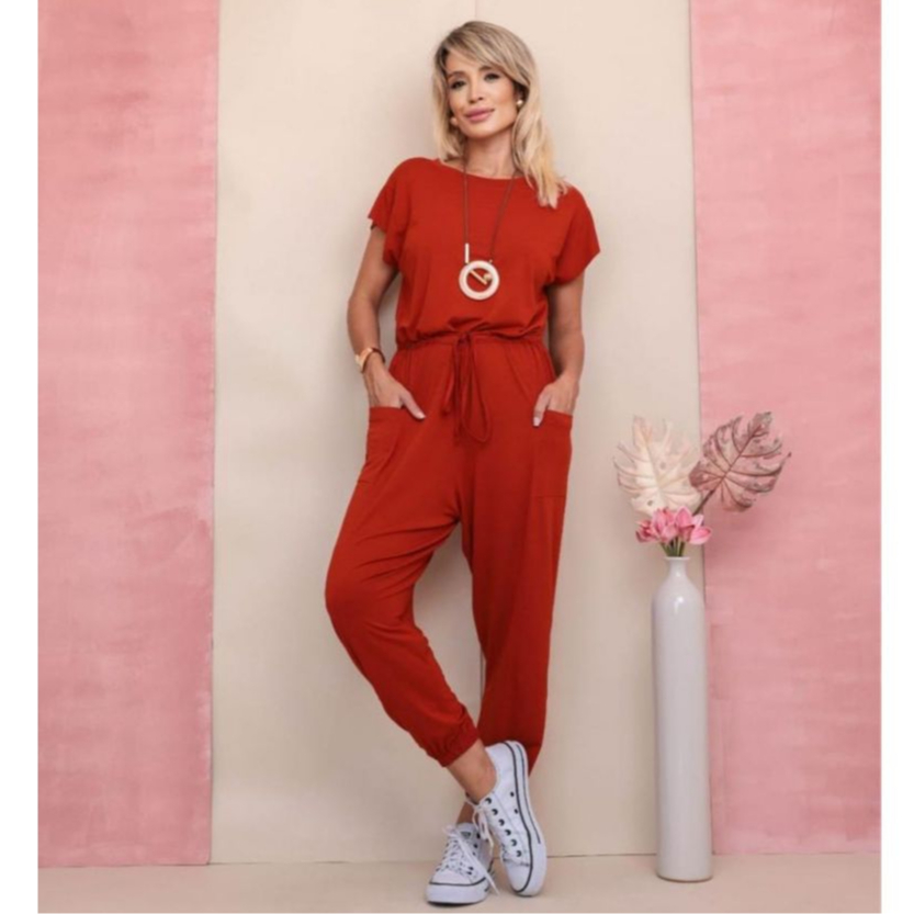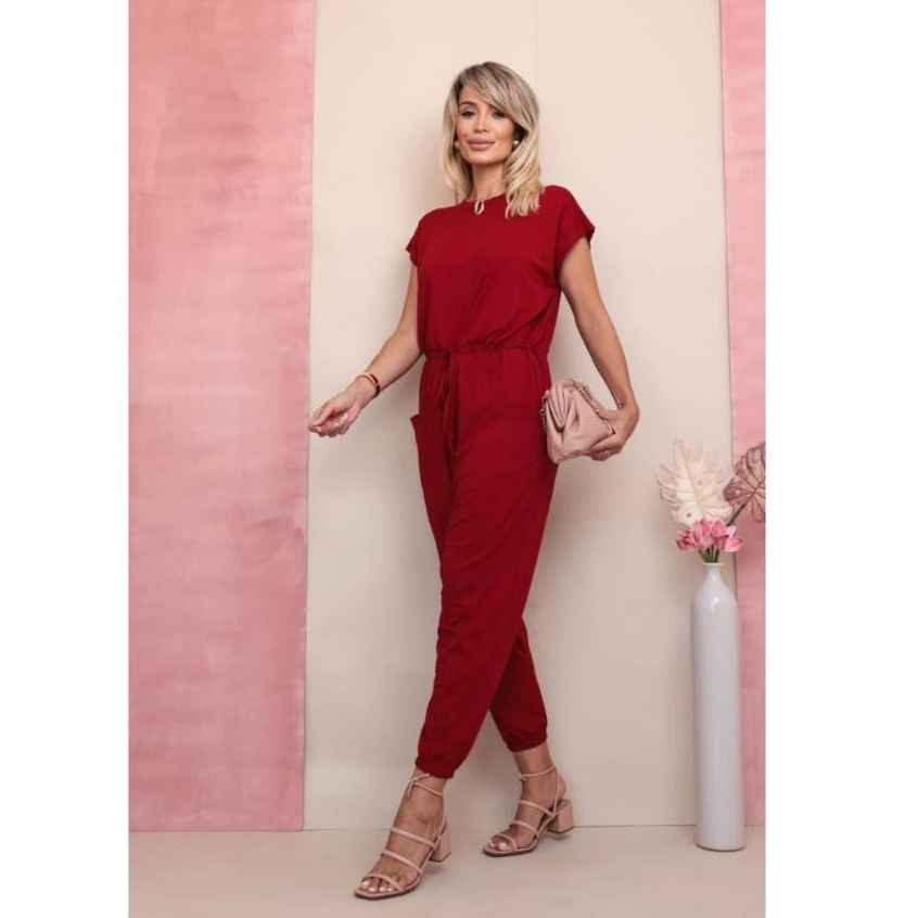 Macacão Saruel Moderno Despojado Longo com manga bolso e ajuste na cintura