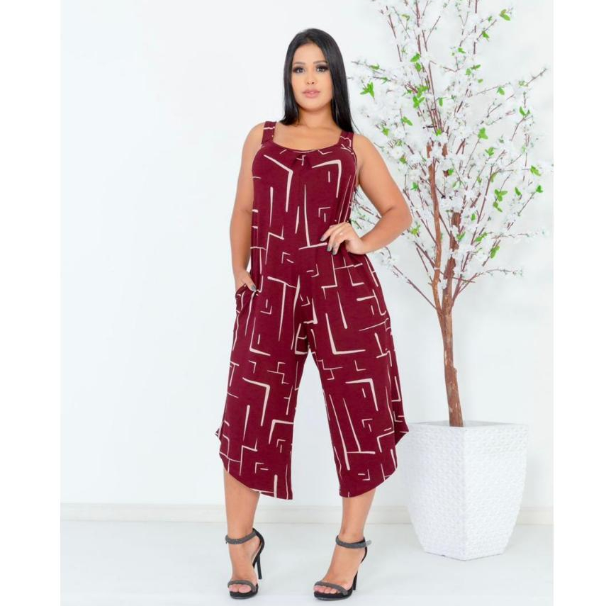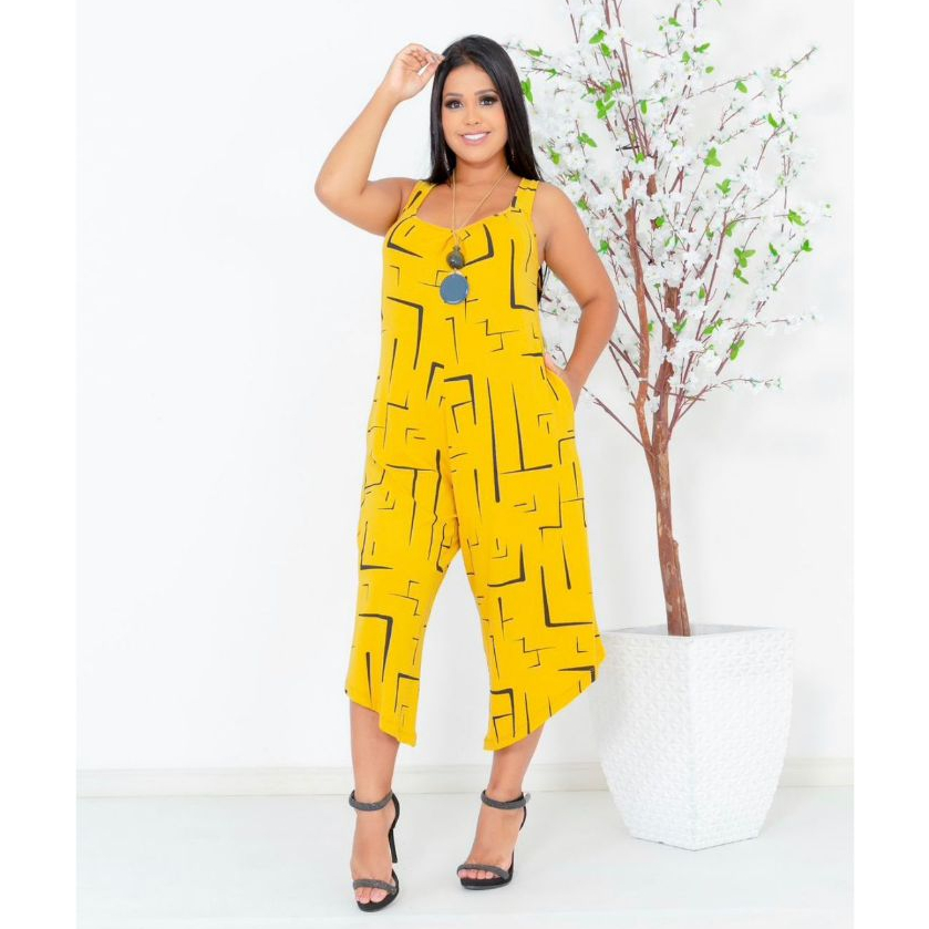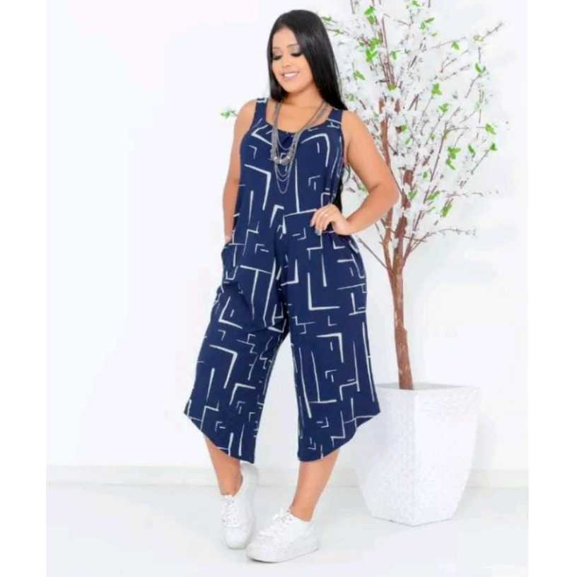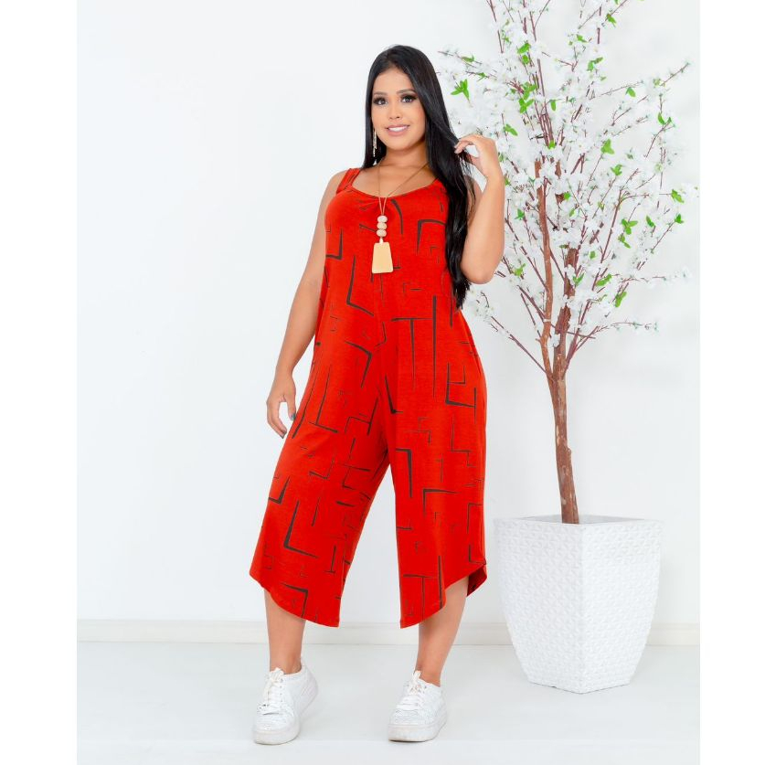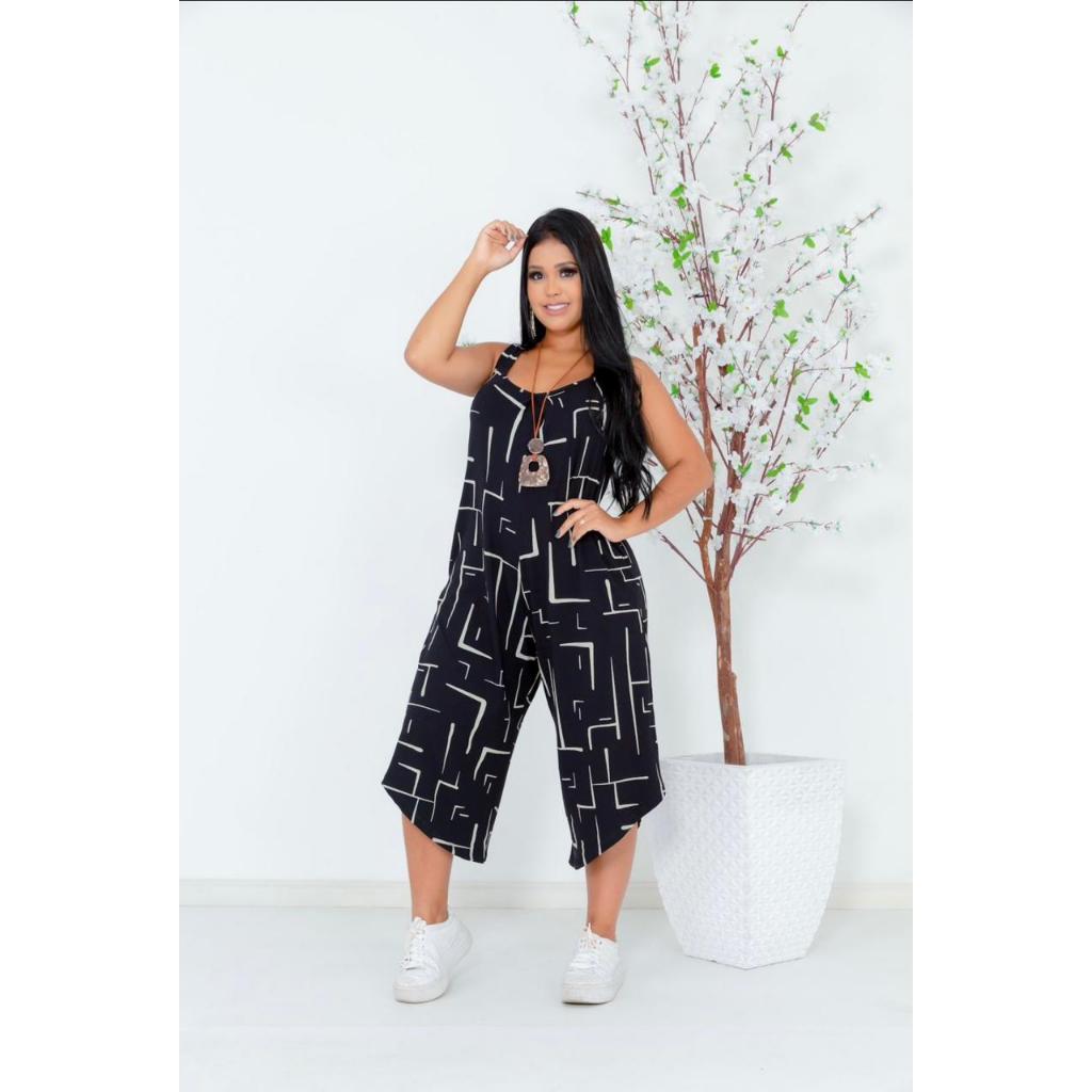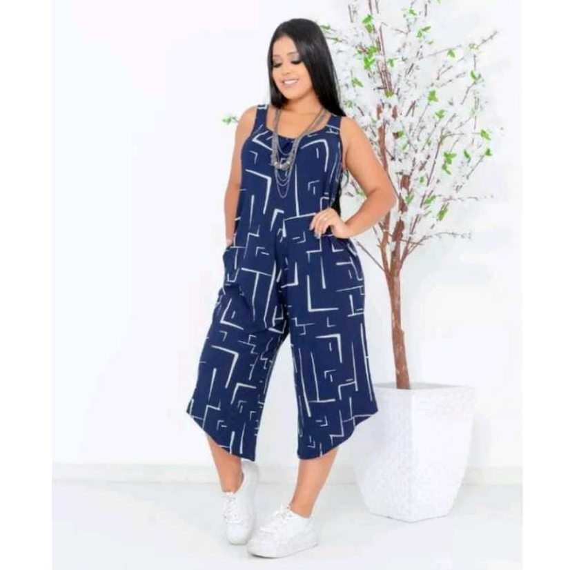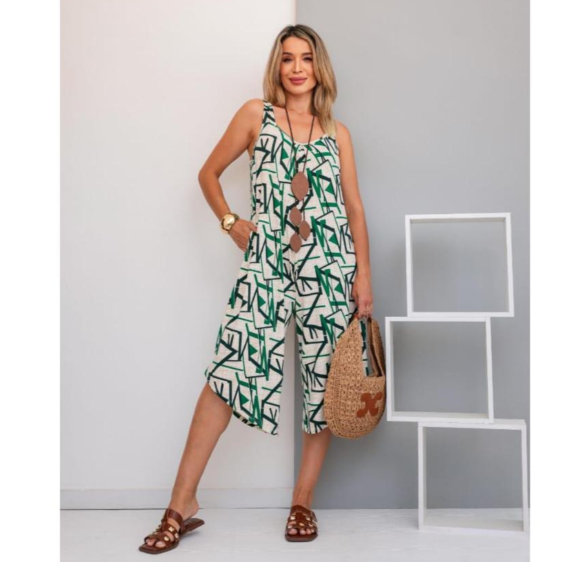 Macacão Pantacourt Estampado Saruel Regata Bolsos Moda Comfy