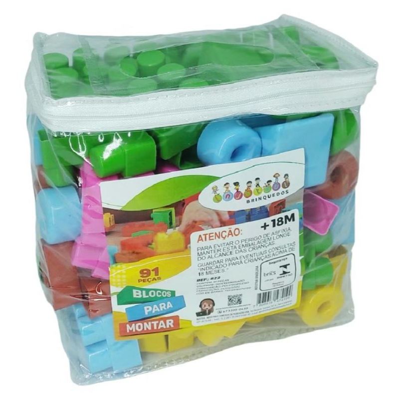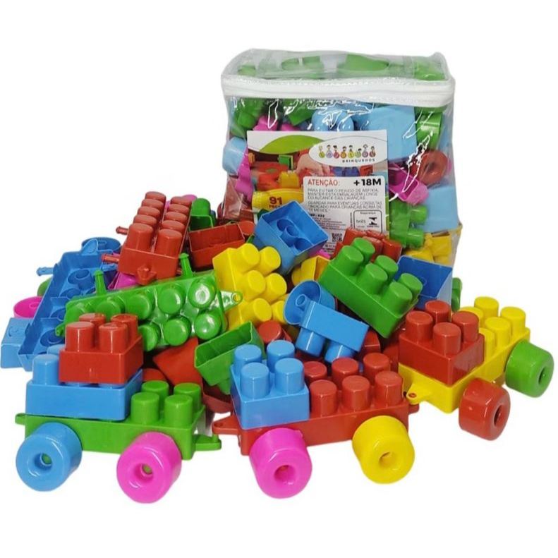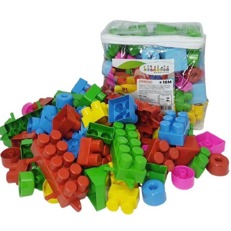 kit 91 Blocos de montar, Bloquinhos Baby Bebe Peças Maiores, Encaixar, Juntar, Aprender, Desenvolver, coordenação motora