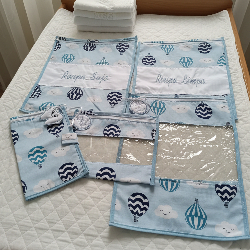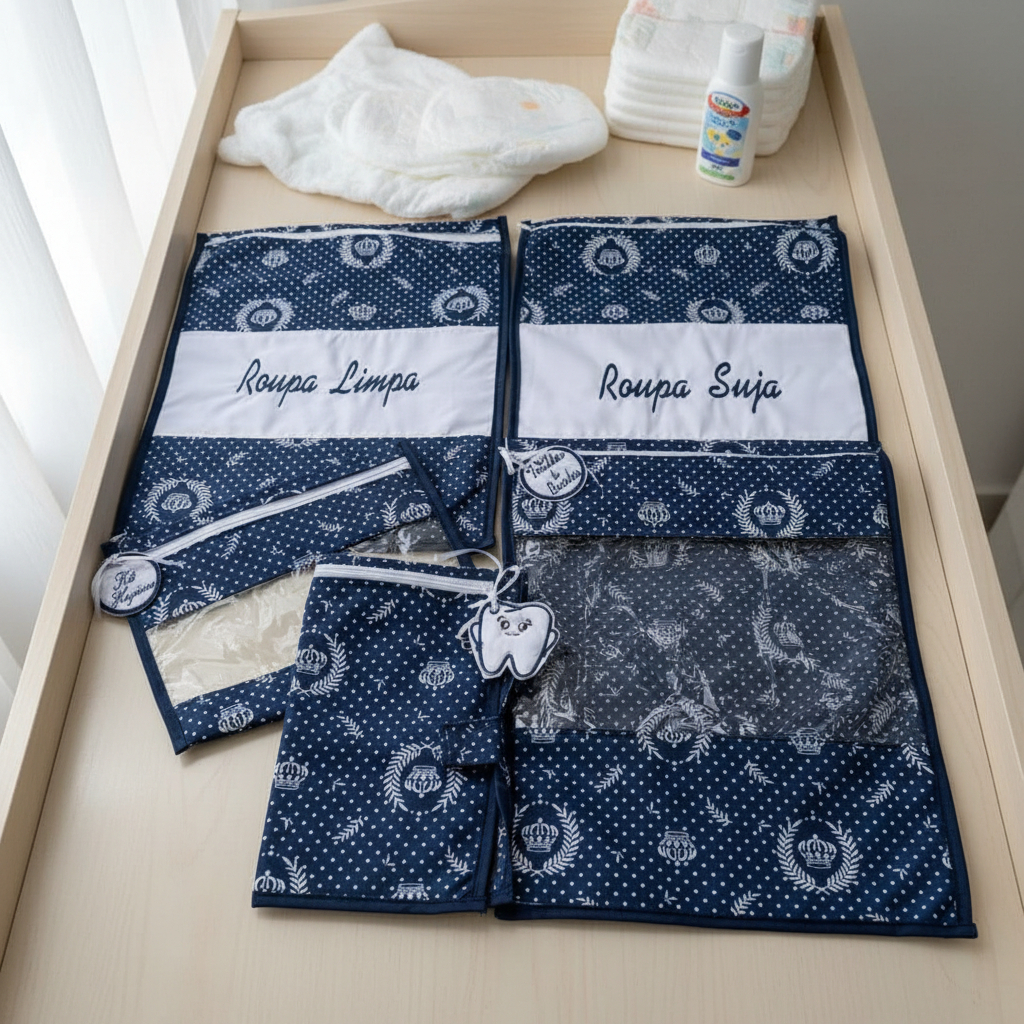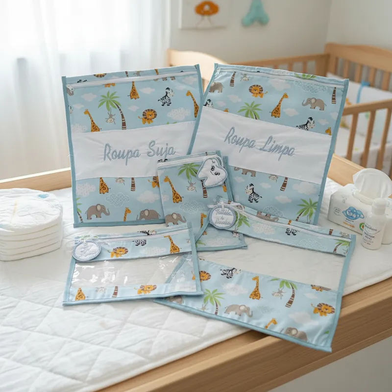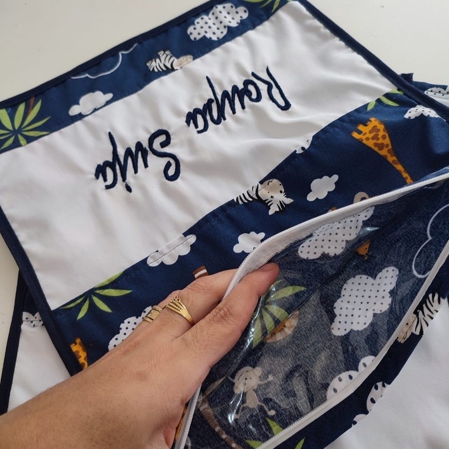 Kit com 5 Saquinhos Organizadores para Escola Creche Viajem em Plástico Cristal + Etiquetas Bordadas