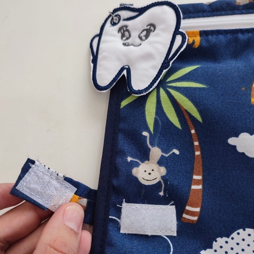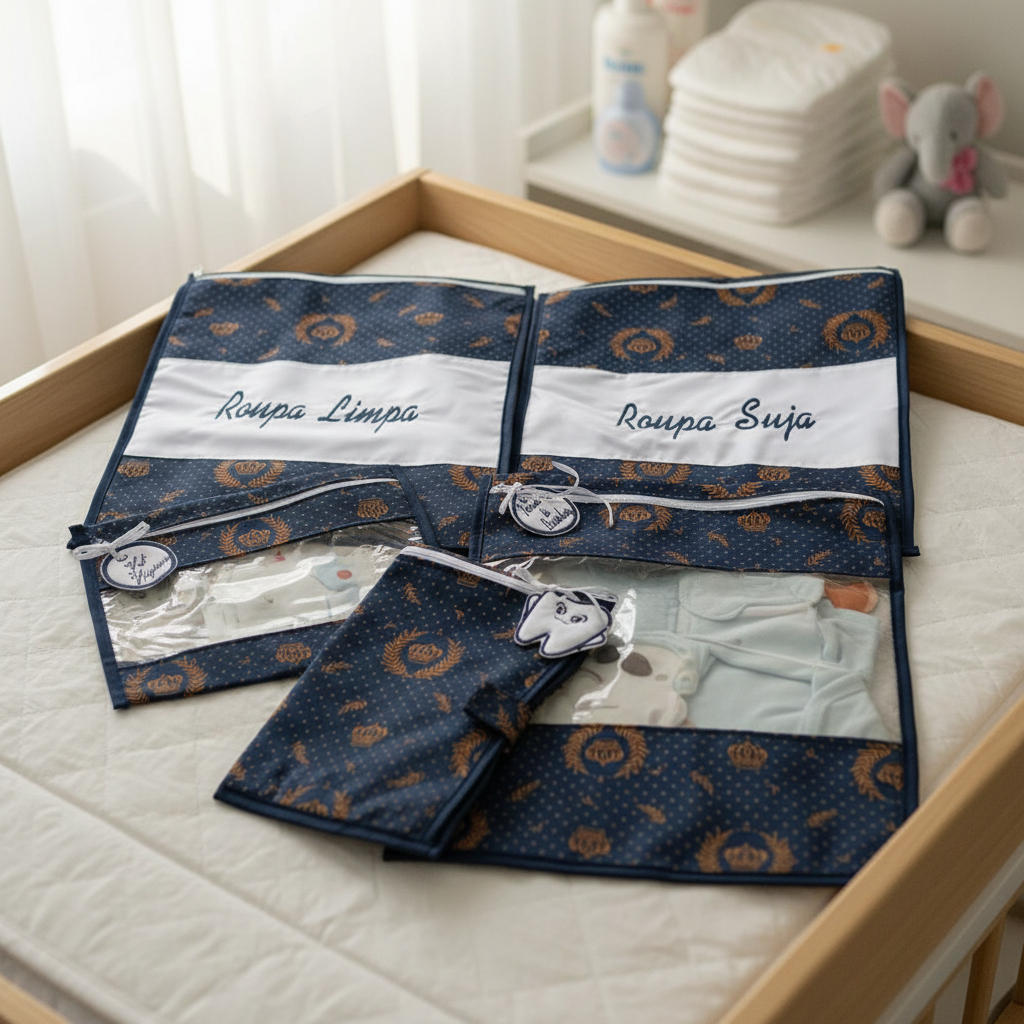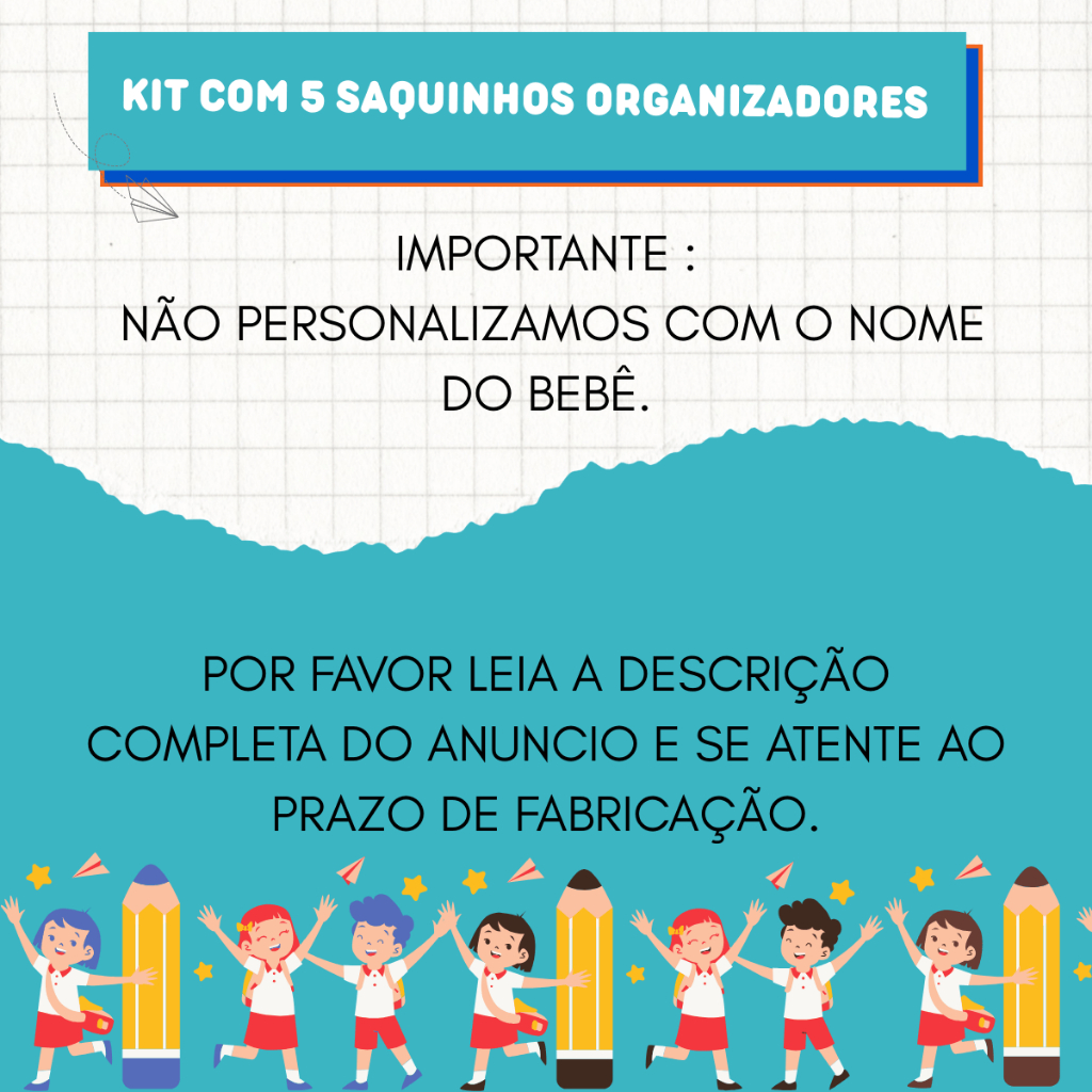Kit com 5 Saquinhos Organizadores para Escola Creche Viajem em Plástico Cristal + Etiquetas Bordadas