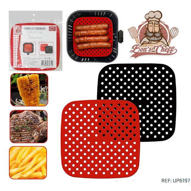 Tapete Protetor de Silicone para Fritadeira Anti-Aderente Air Fryers Redondo / Quadrado 1 unidade