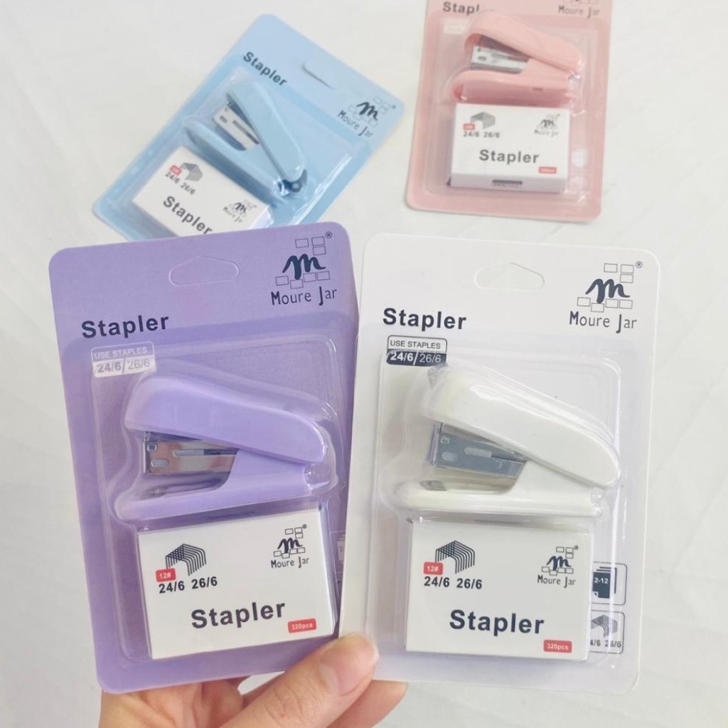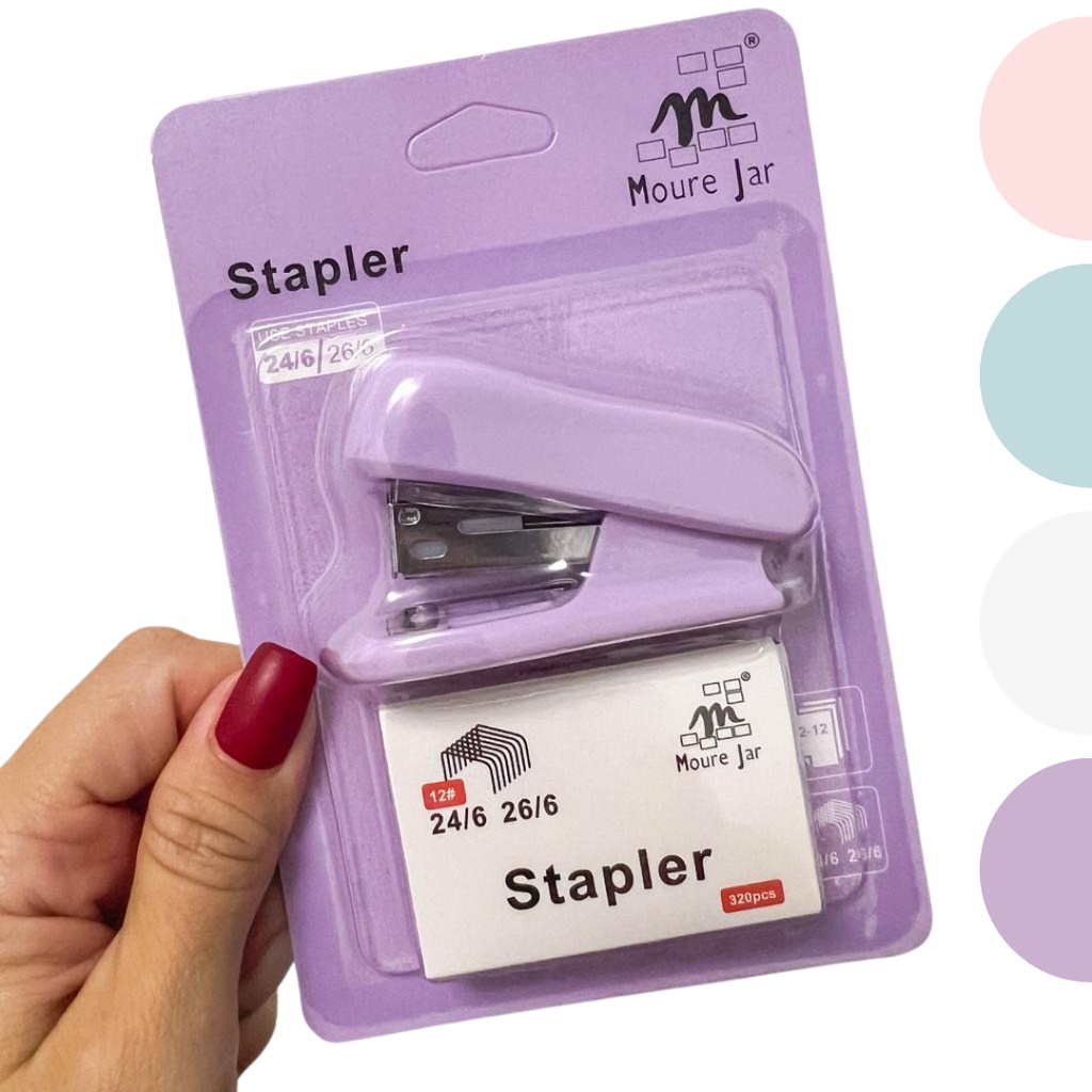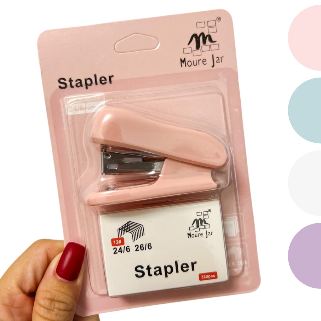 Kit Mini Grampeador Escolar Com Grampos Escritório Colorido