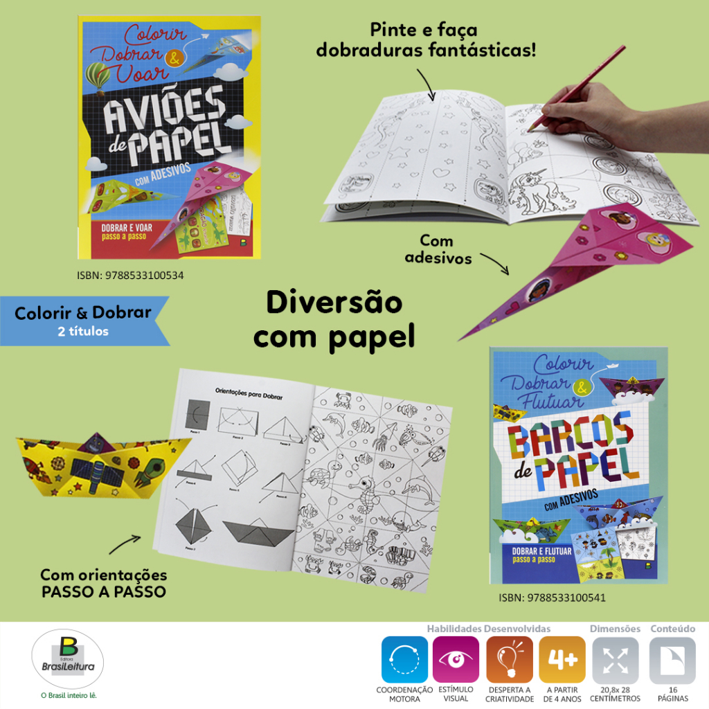 Livro Infantil Colorir e Dobrar: Aviões de Papel - Dobradura Origami Aviãozinho - Com adesivos