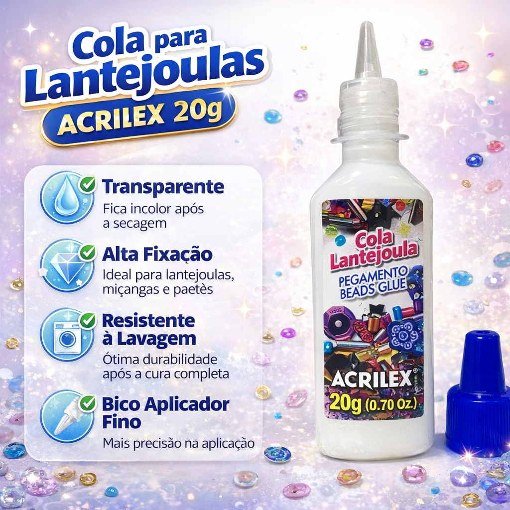 Cola para Artesanato Acrilex 20g Lantejoulas Miçangas Paetês Incolor