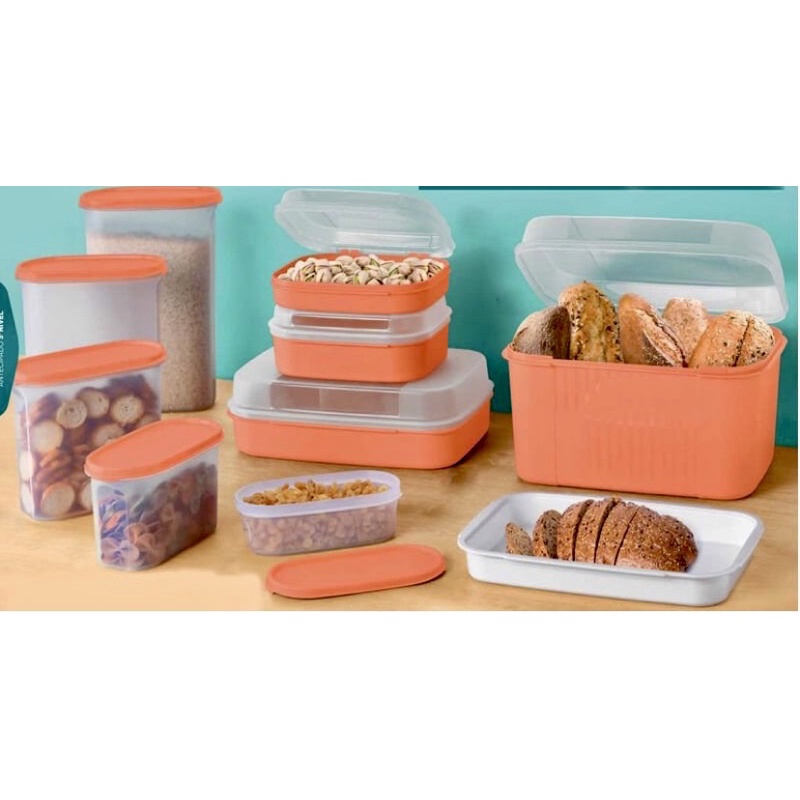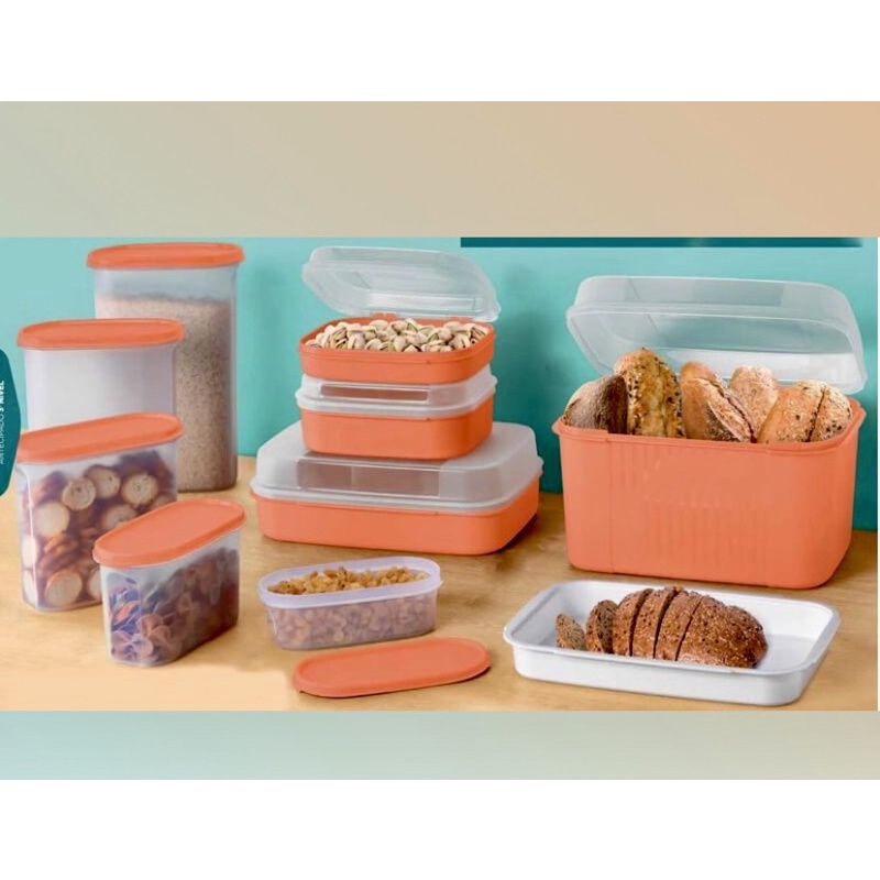Tupperware kit 9 peças modulares e modulares classic translúcida com tampa laranja Pda+super brinde