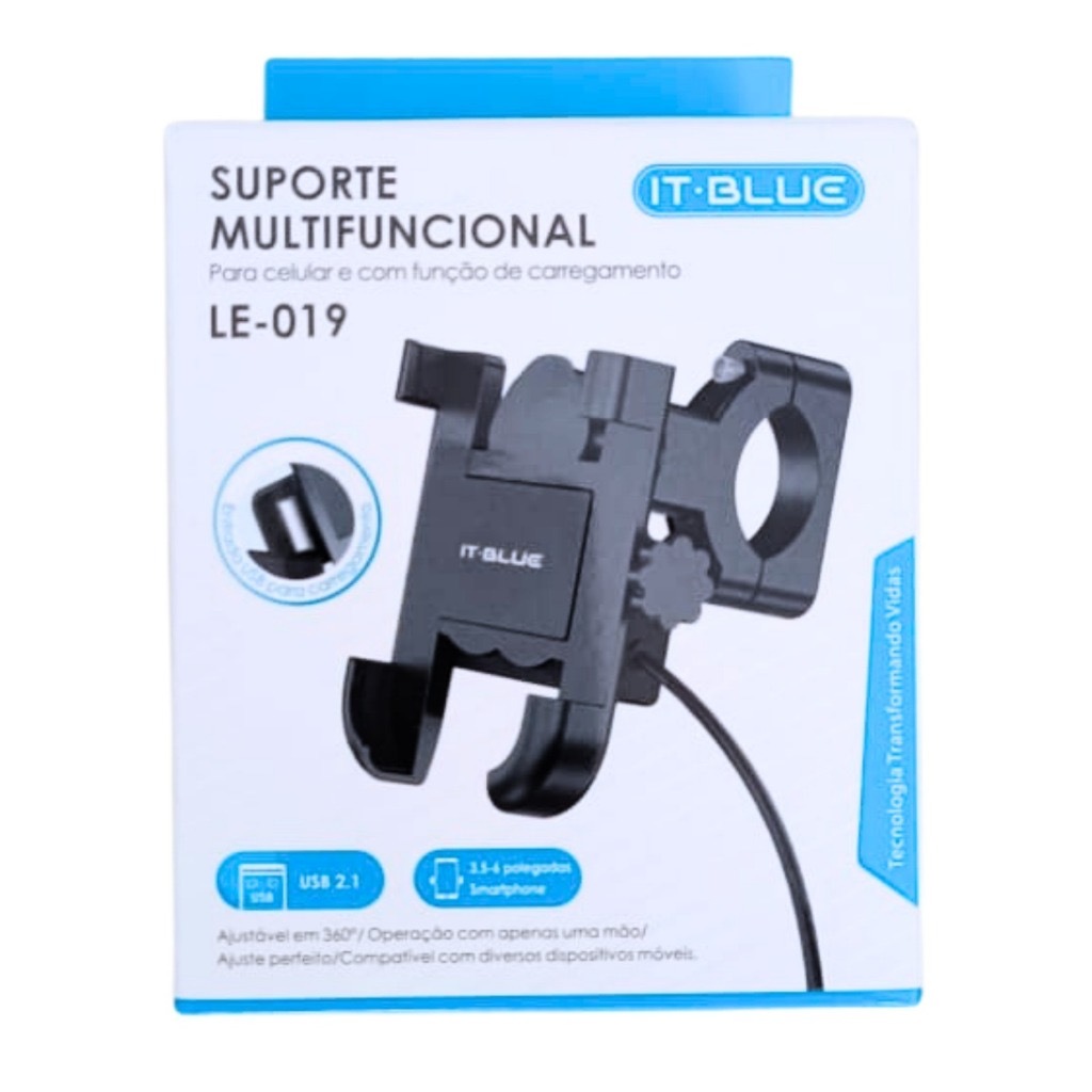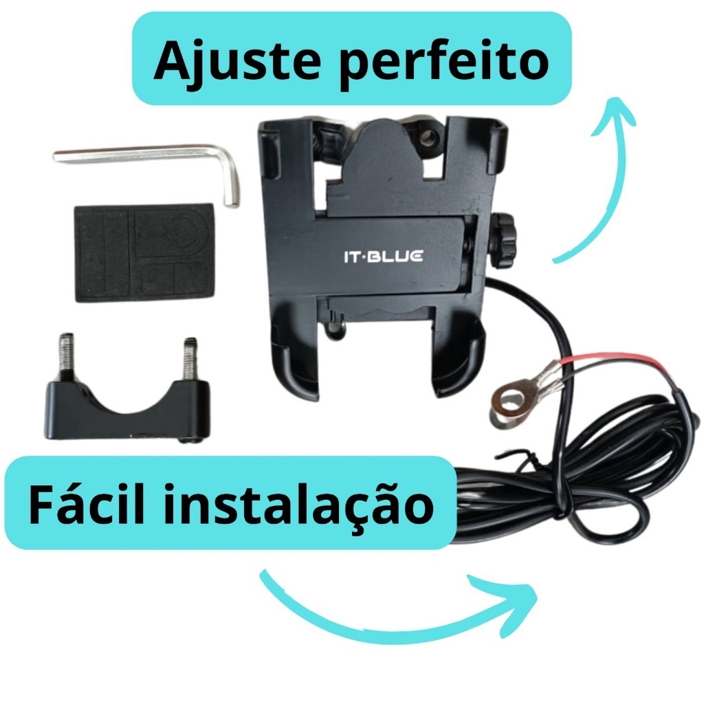 SUPORTE DE CELULAR PARA MOTO COM CARREGADOR IT-BLUE LE-019 somente para Retrovisor Moto
