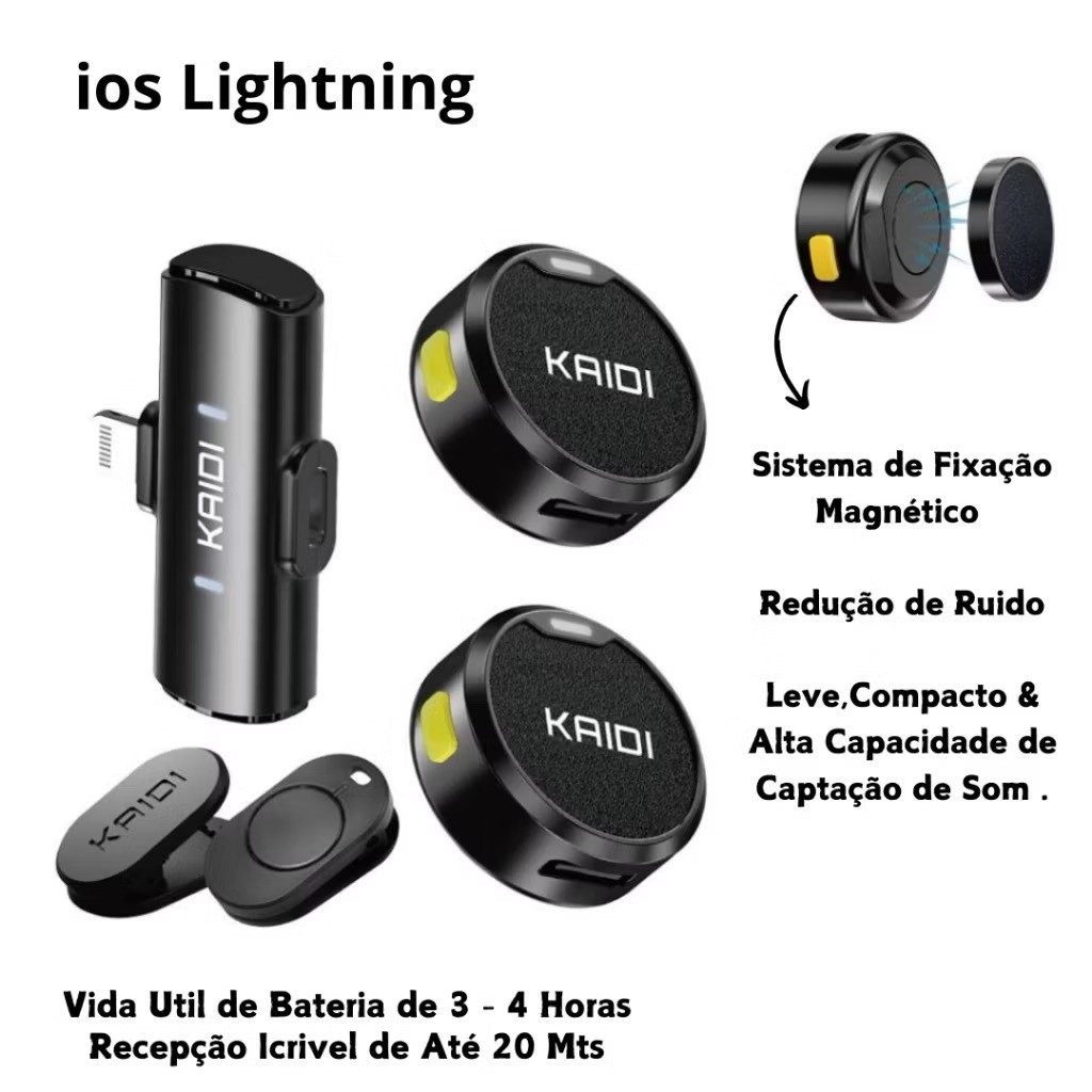 Microfone de lapela duplo redondo magnético Kaidi iphone descreto entrevista podcast video