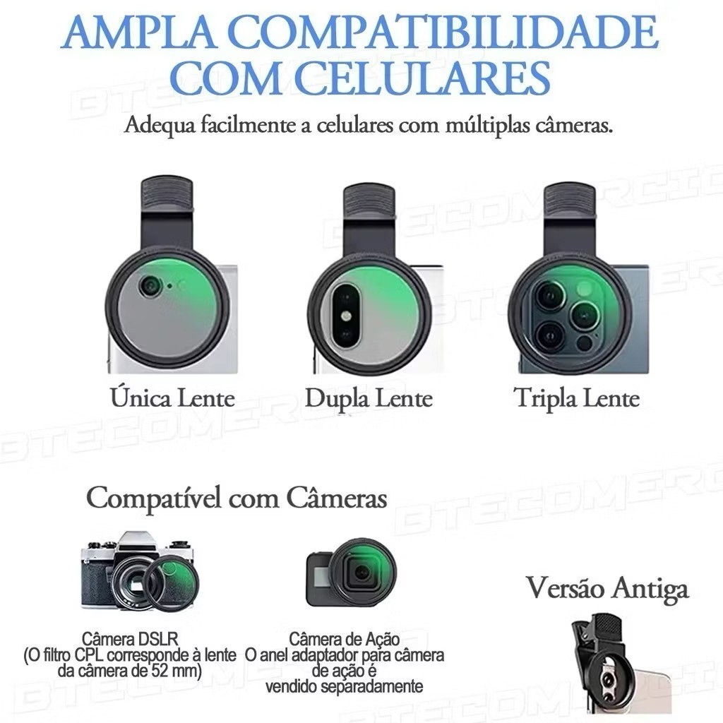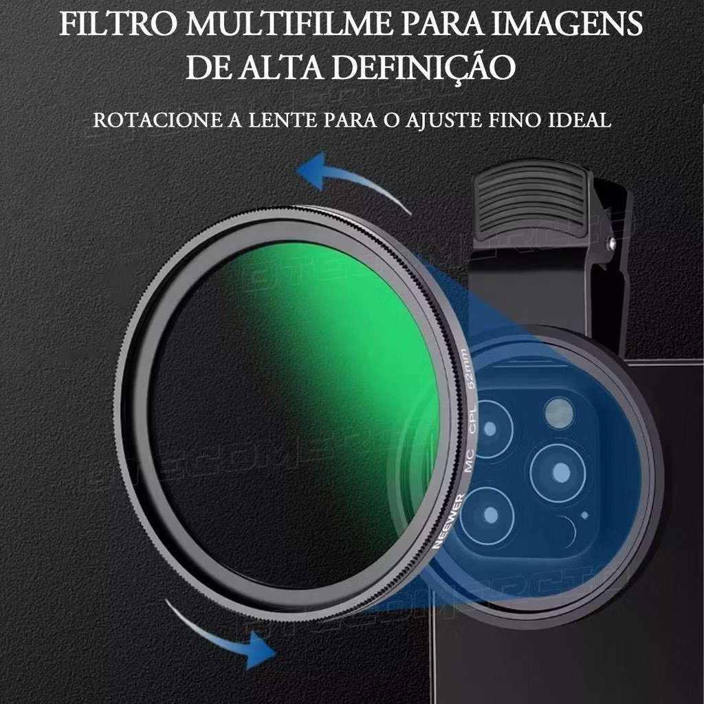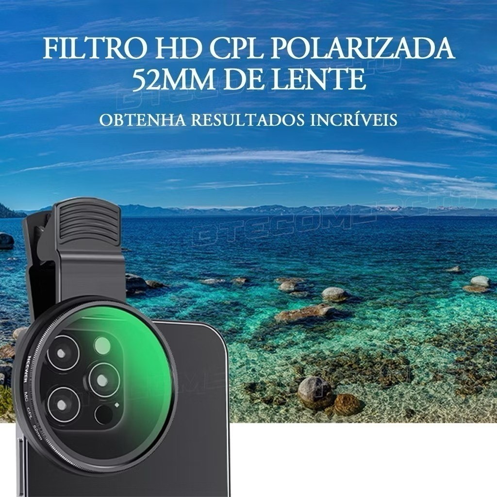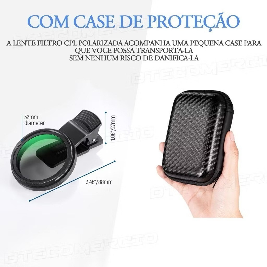 52mm Filtro Cpl Lente Polarizador Para Celular Clipe Anti Reflexo Com Estojo