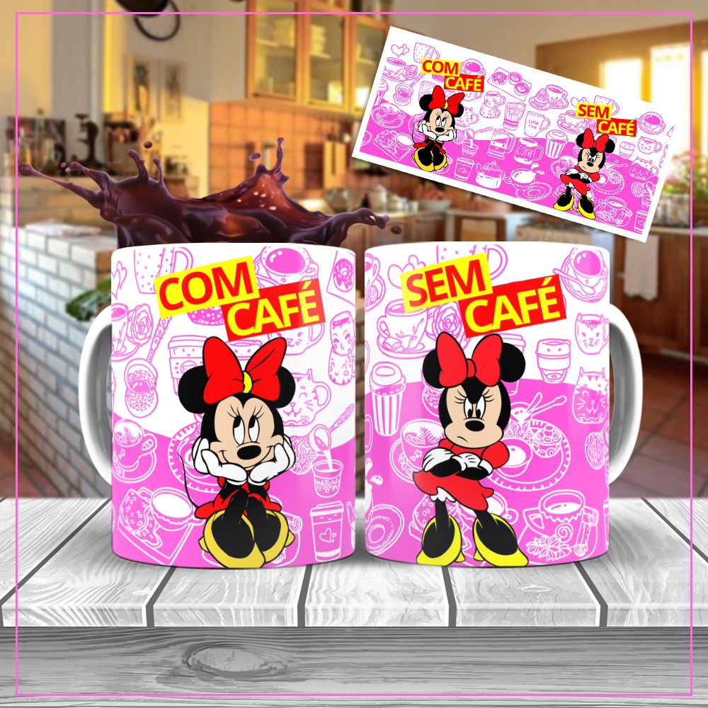 Caneca de Porcelana Minnie com café/sem café - PORCELANA ALTO BRILHO