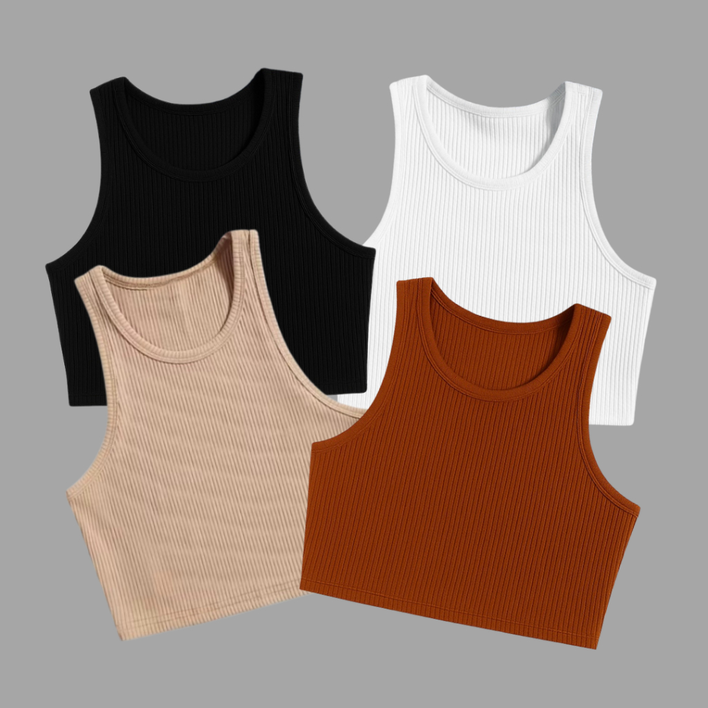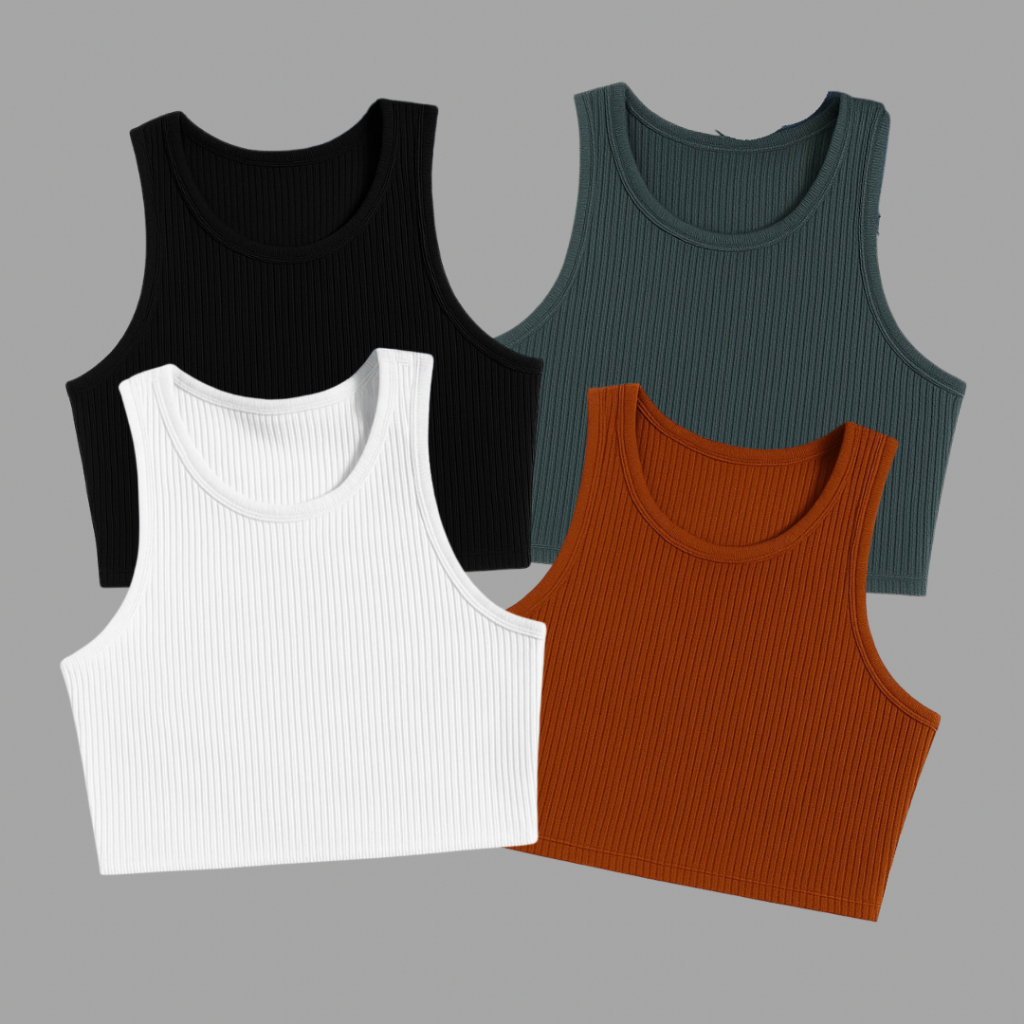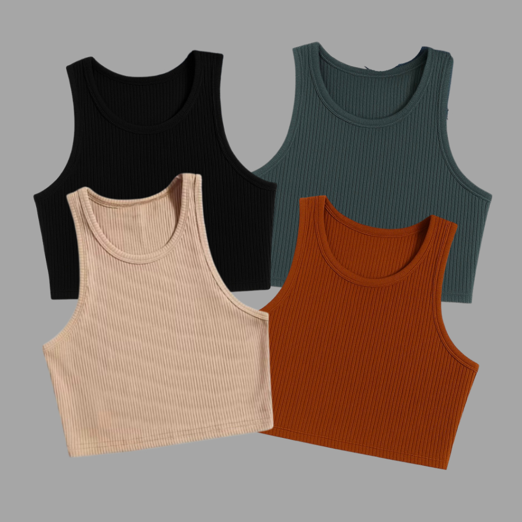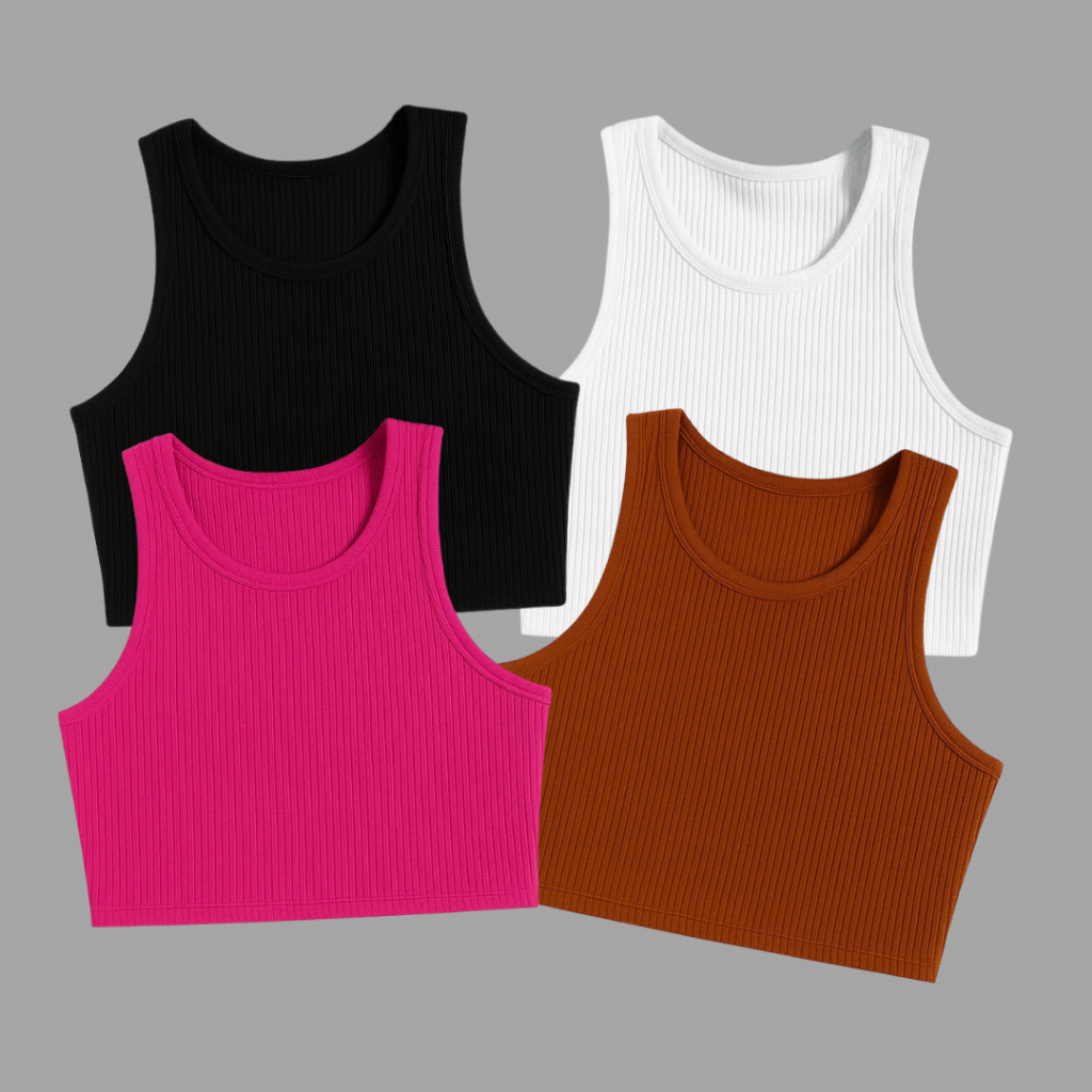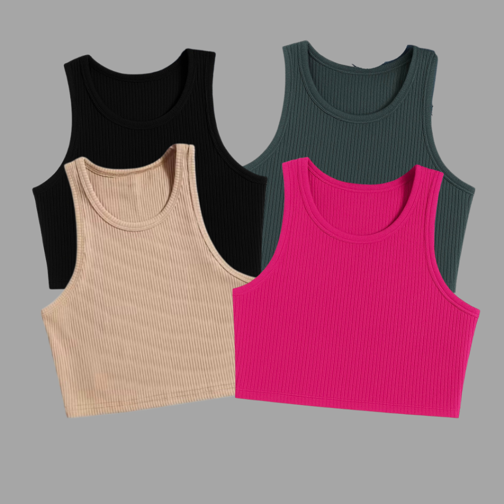 KIT COM 4 Cropped Regata Regatinha Blogueira Top Blusinha Basica Canelada