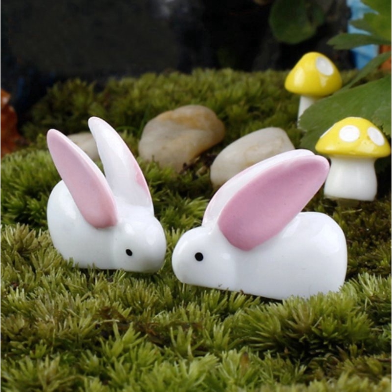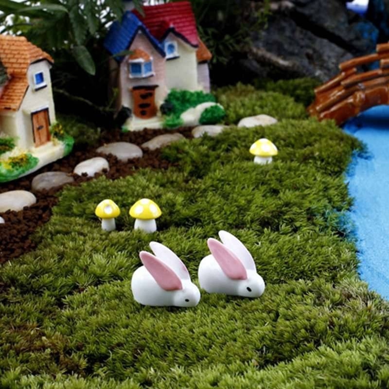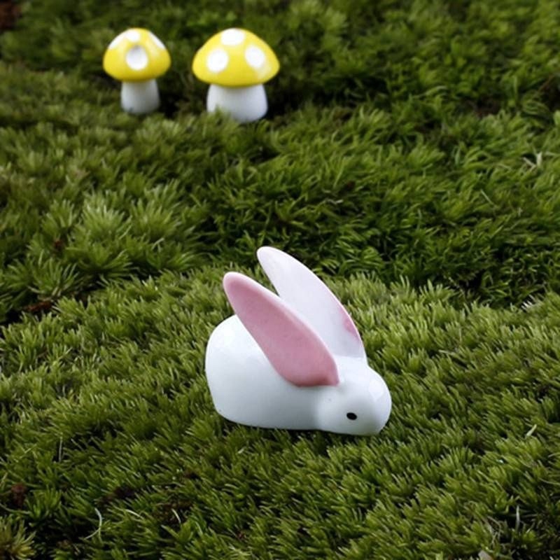 10 Pçs / Set Orelhas Grandes Coelho Miniatura Paisagem Ornamentos De Fadas Jardim Bonsai Casa De Bonecas Decorações