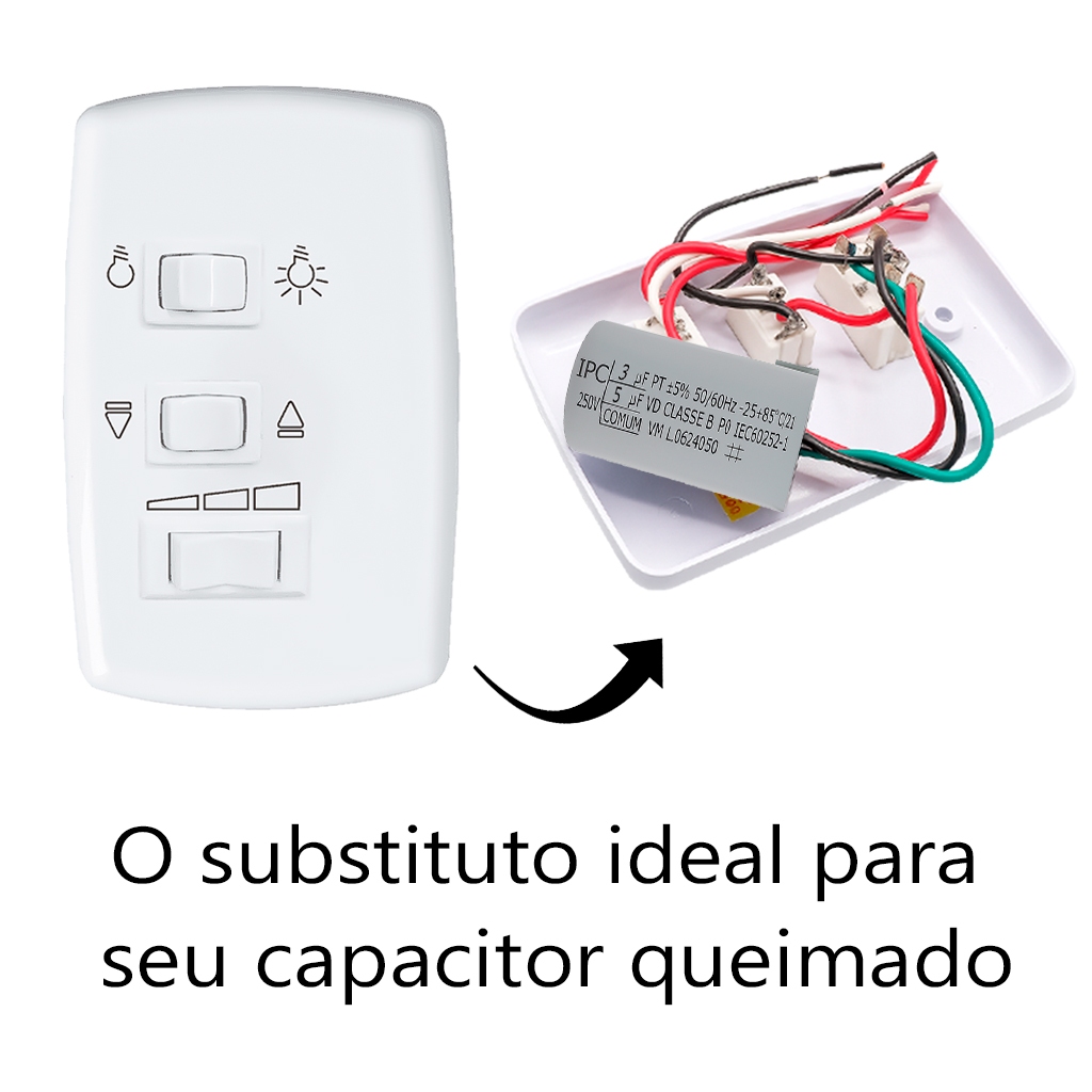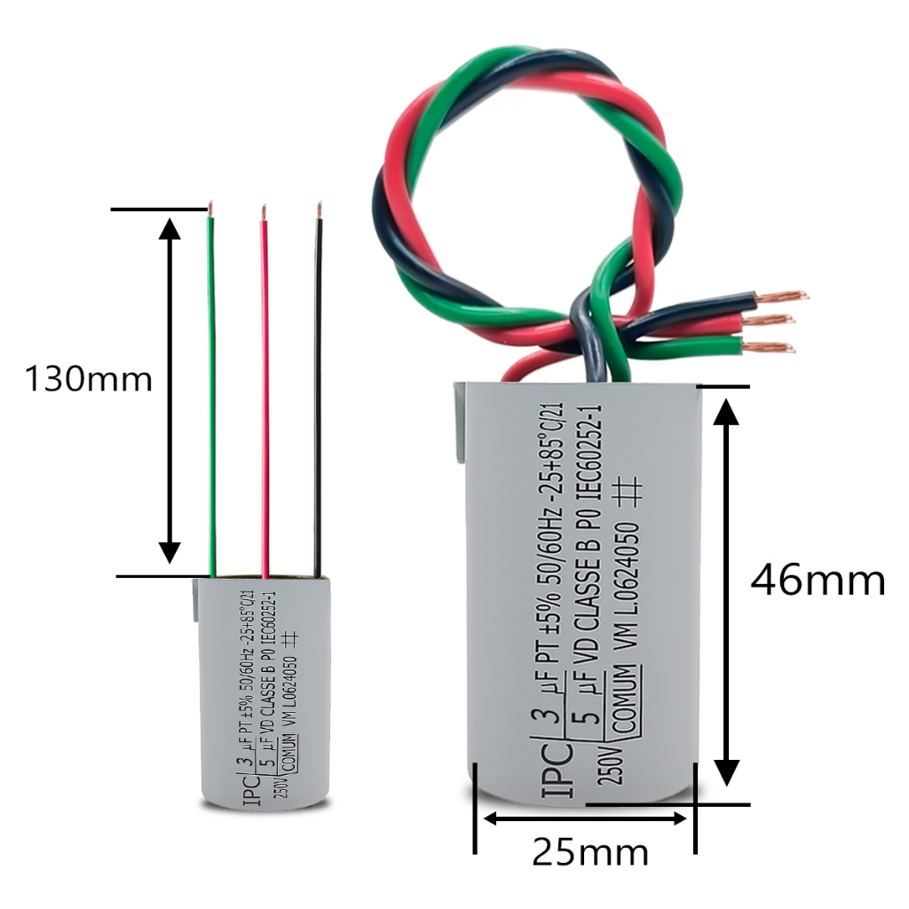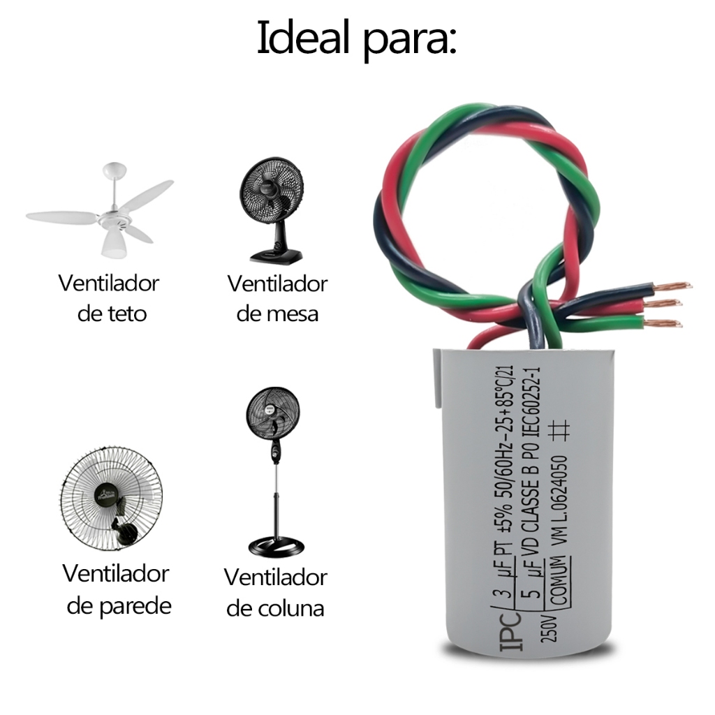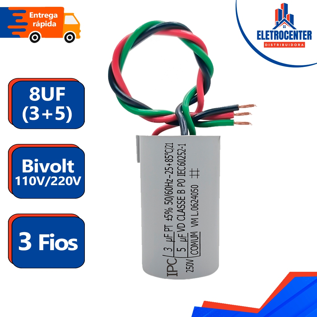 Capacitor 8uf 3 Fios 3+5uf 250V Para Motor Ventilador - IPC