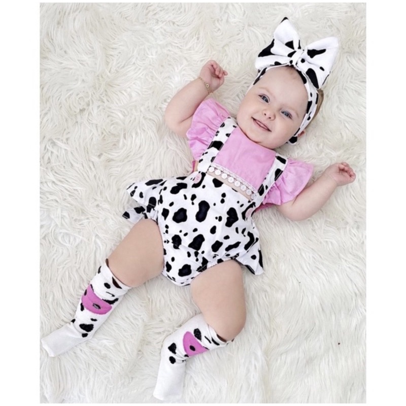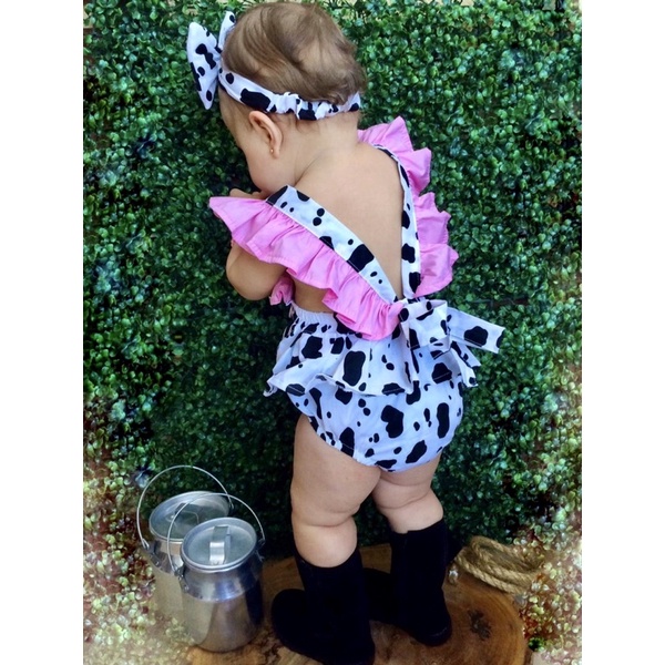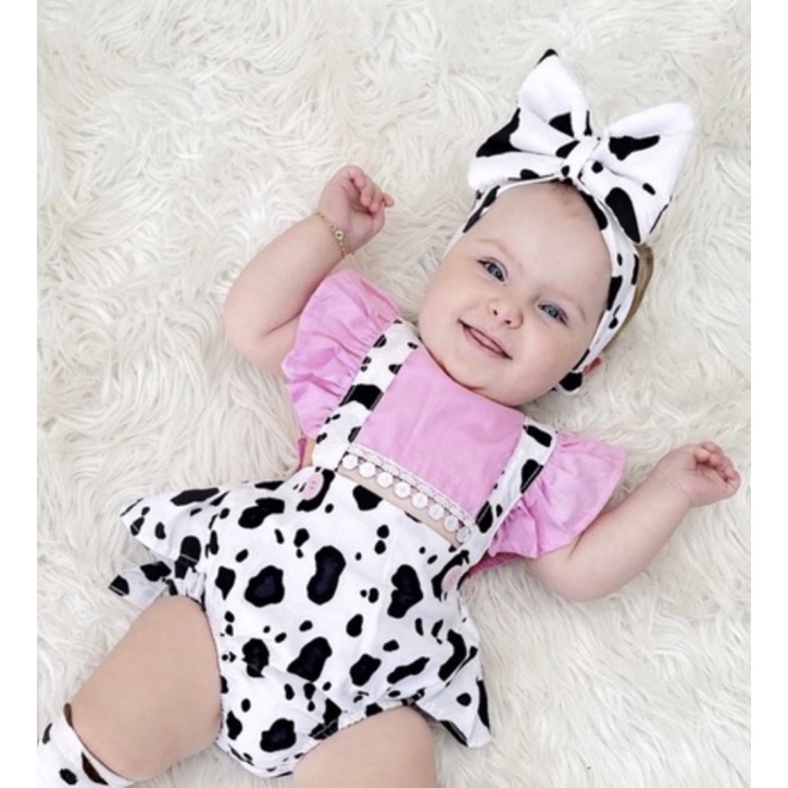 Jardineira Saia Romper Fazendinha Vaquinha Bezerrinha Romper Body