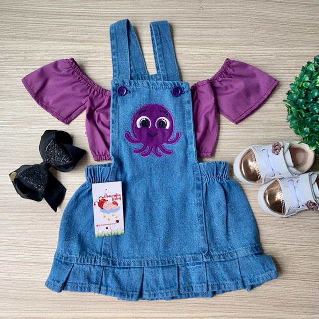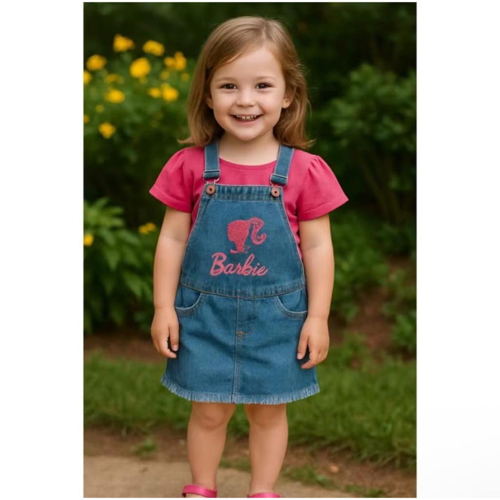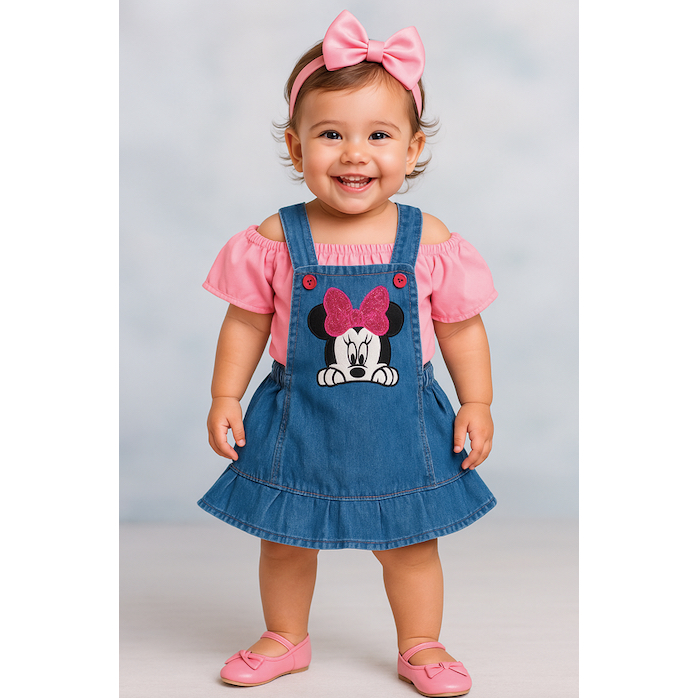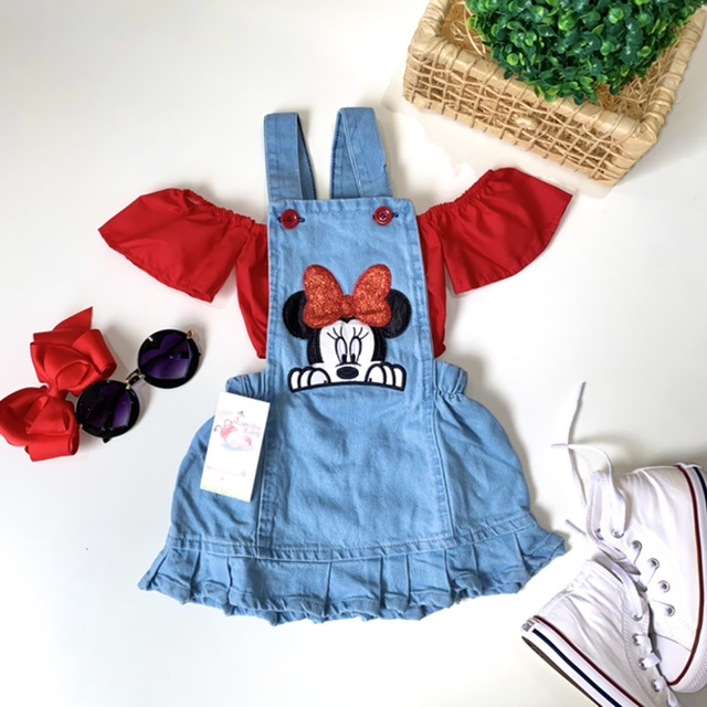 Jardineira Jeans Infantil Minnie Menina Bebê