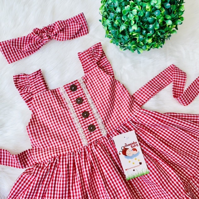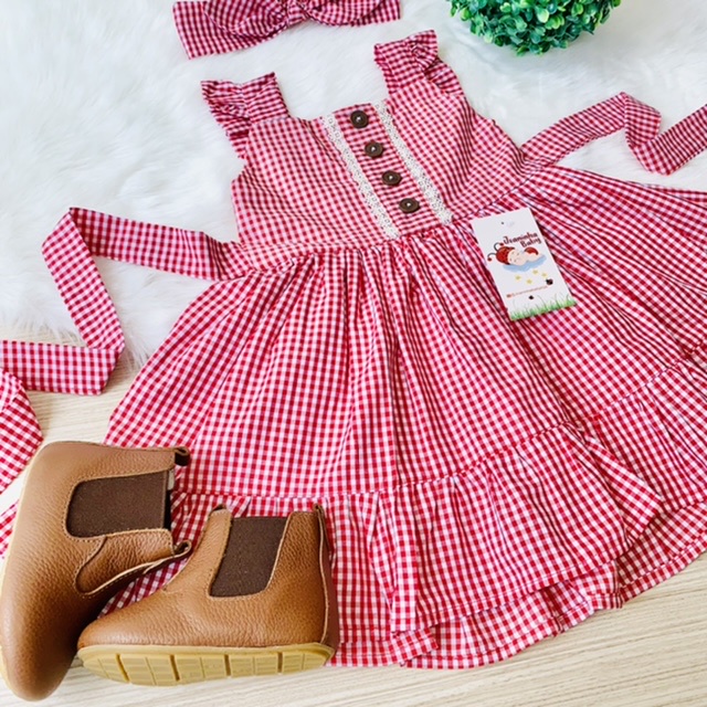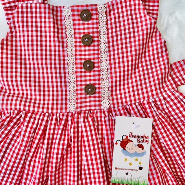 Vestido Infantil Fazendinha Xadrez Vermelho (Não acompanha calçado)