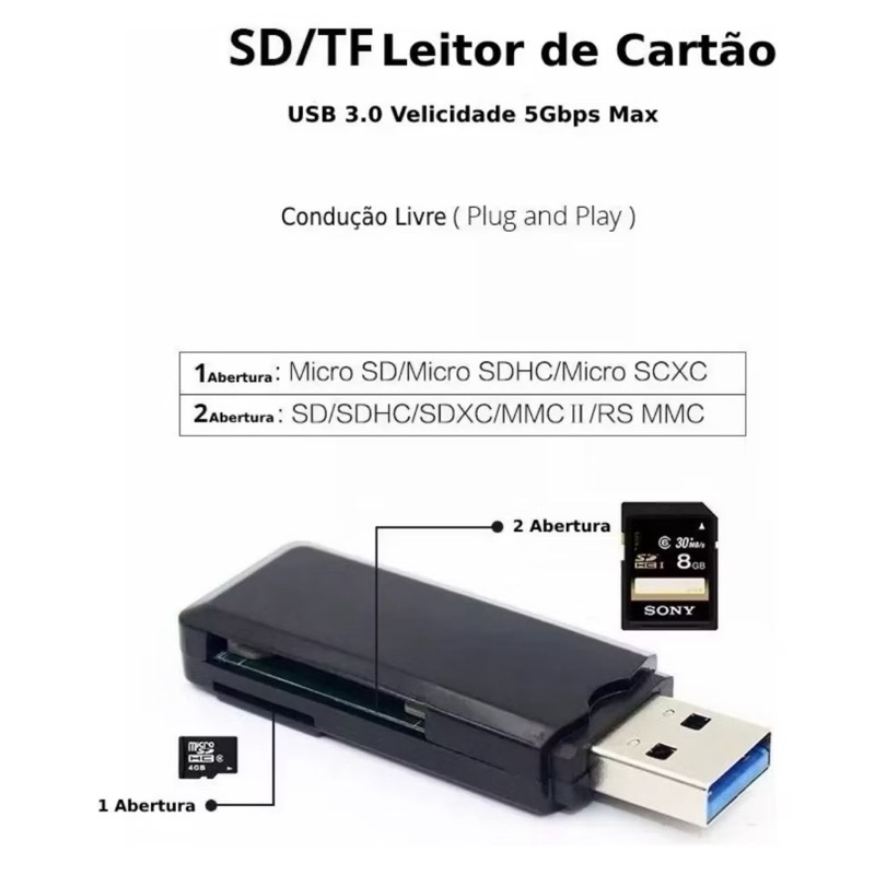 Leitor De Cartão Usb 3.0/2.0 Adaptador Micro Sd / Sdxc 5gbps alta velocidade