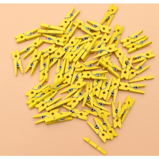 Mini Prendedor de Madeira Amarelo 2,5cm - 50 Unidades - Rizzo Distribuidora