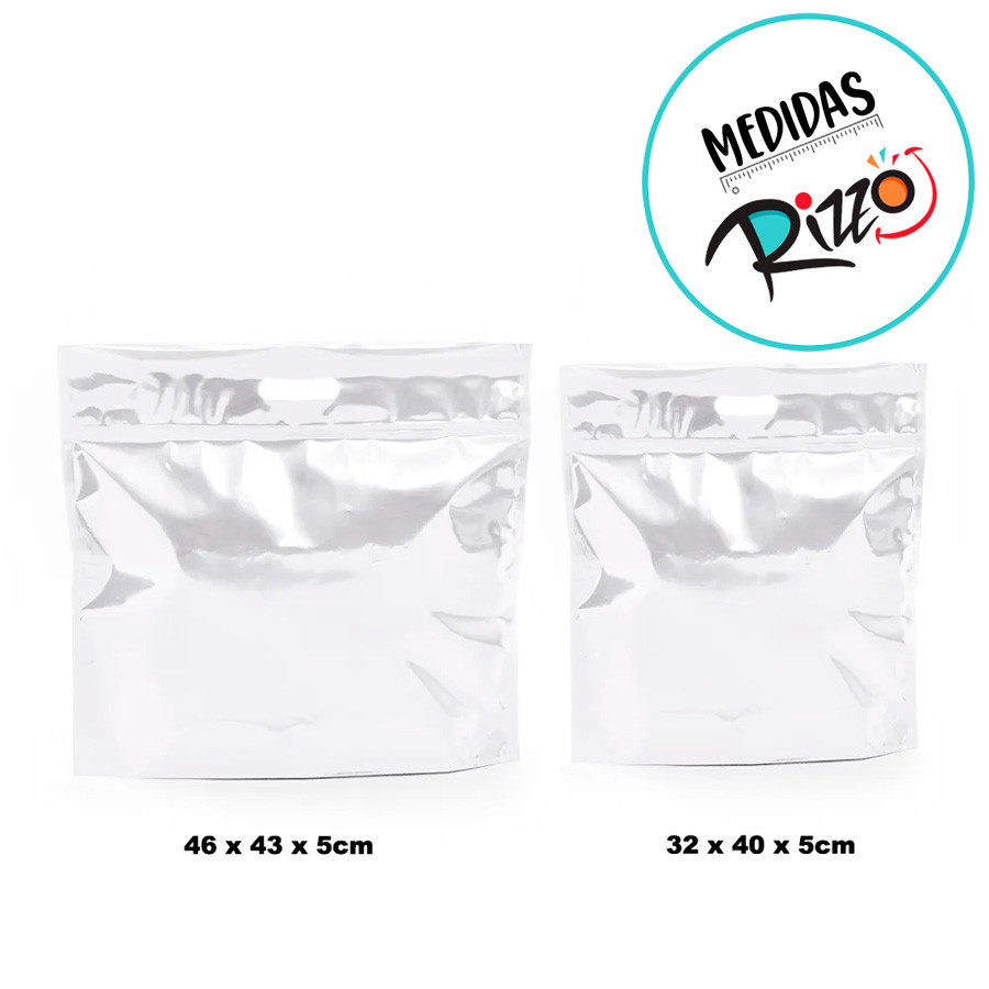 Sacola Metalizada com Zip - 46x43x5cm - Branca - 1 unidade - Cromus - Rizzo