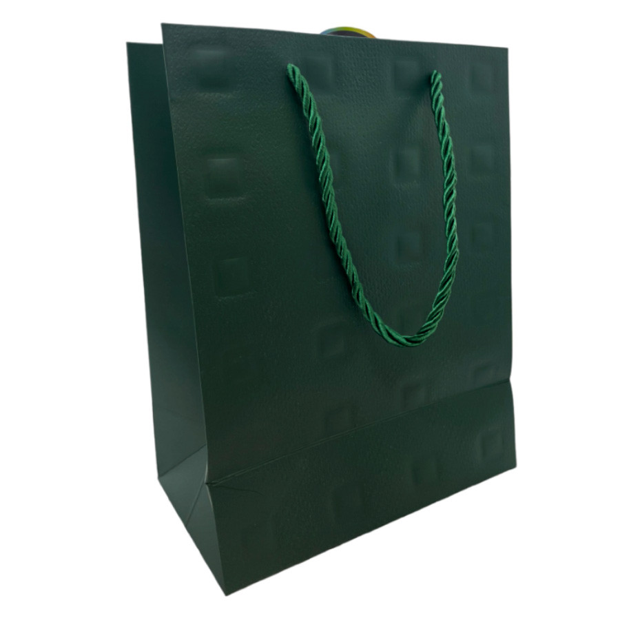 Sacola de Papel para Presente Quadrados Almofadados - Verde - 32x26x12cm - 1 unidade - Rizzo
