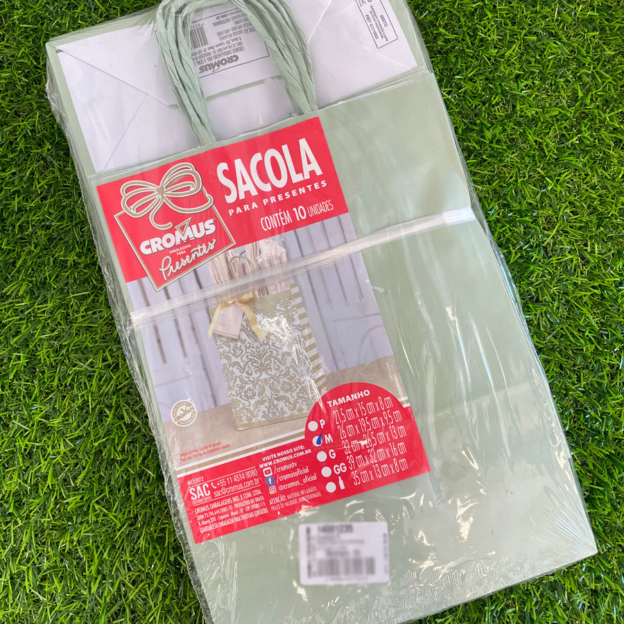 Sacola de Papel M 26x19,59,5cm - Eucalipto - 10 unidades - Cromus - Rizzo