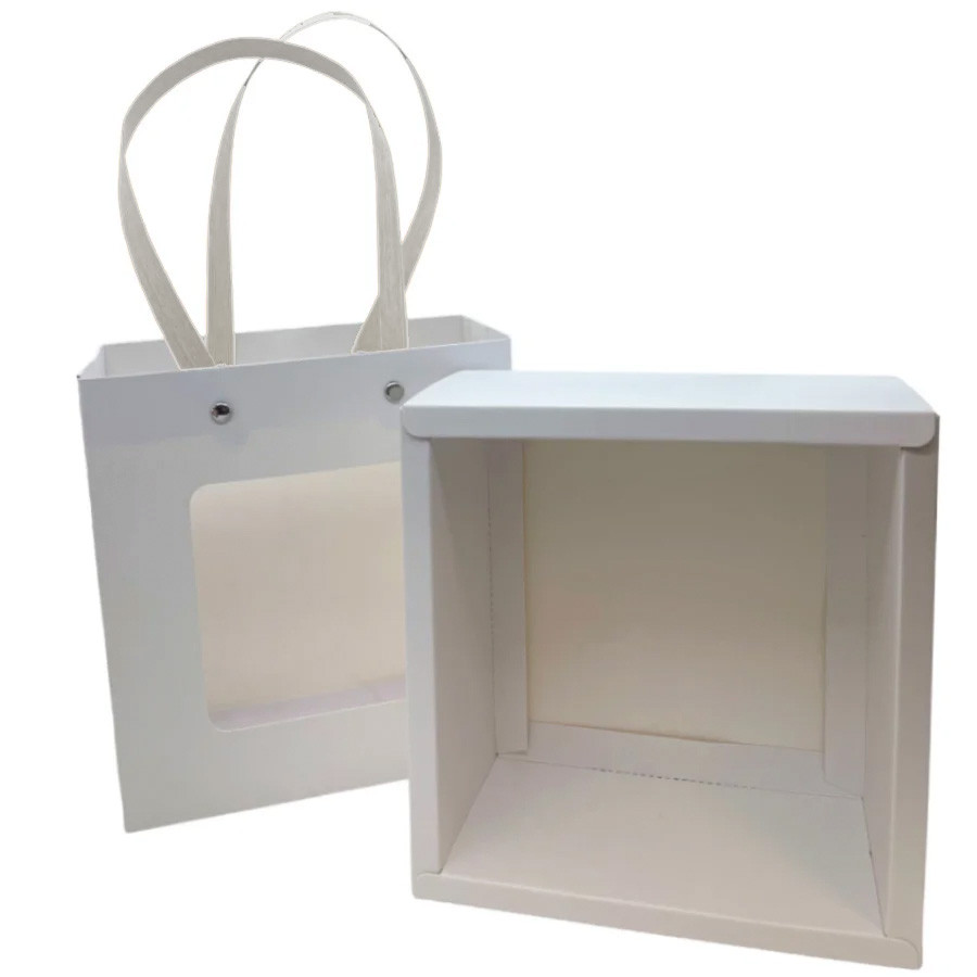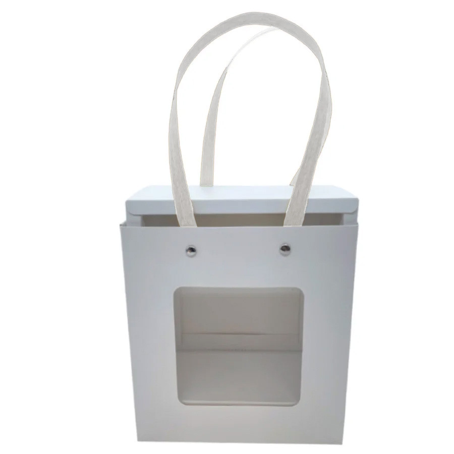 Sacola de Papel com Gaveta e Visor Alça Branca 20x22x9cm - Branca - 10 unidades - Rizzo