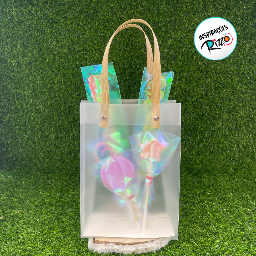 Sacola Transparente Fosca com Alça de Fibra - 15x21x7cm - 1 unidade - Rizzo